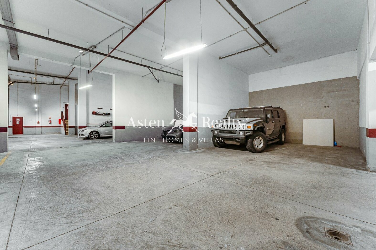 Zur Immobilie gehören zwei Parkplätze, die in Zukunft mit einem automatischen Tor verschlossen werden können, sowie ein Abstellraum. Die Garage verfügt über hohe Decken, was für zusätzlichen Komfort und Platz sorgt. Von der Garage aus gelangt man mit dem Aufzug in die Wohnung, von wo aus nur noch wenige Stufen bis zur Eingangstür führen – ein großer Vorteil gegenüber dem Haupteingang der Anlage, der über mehrere Treppenstufen verfügt.
