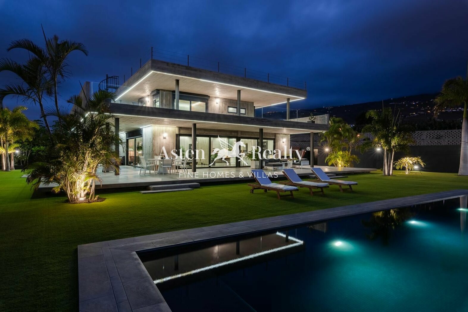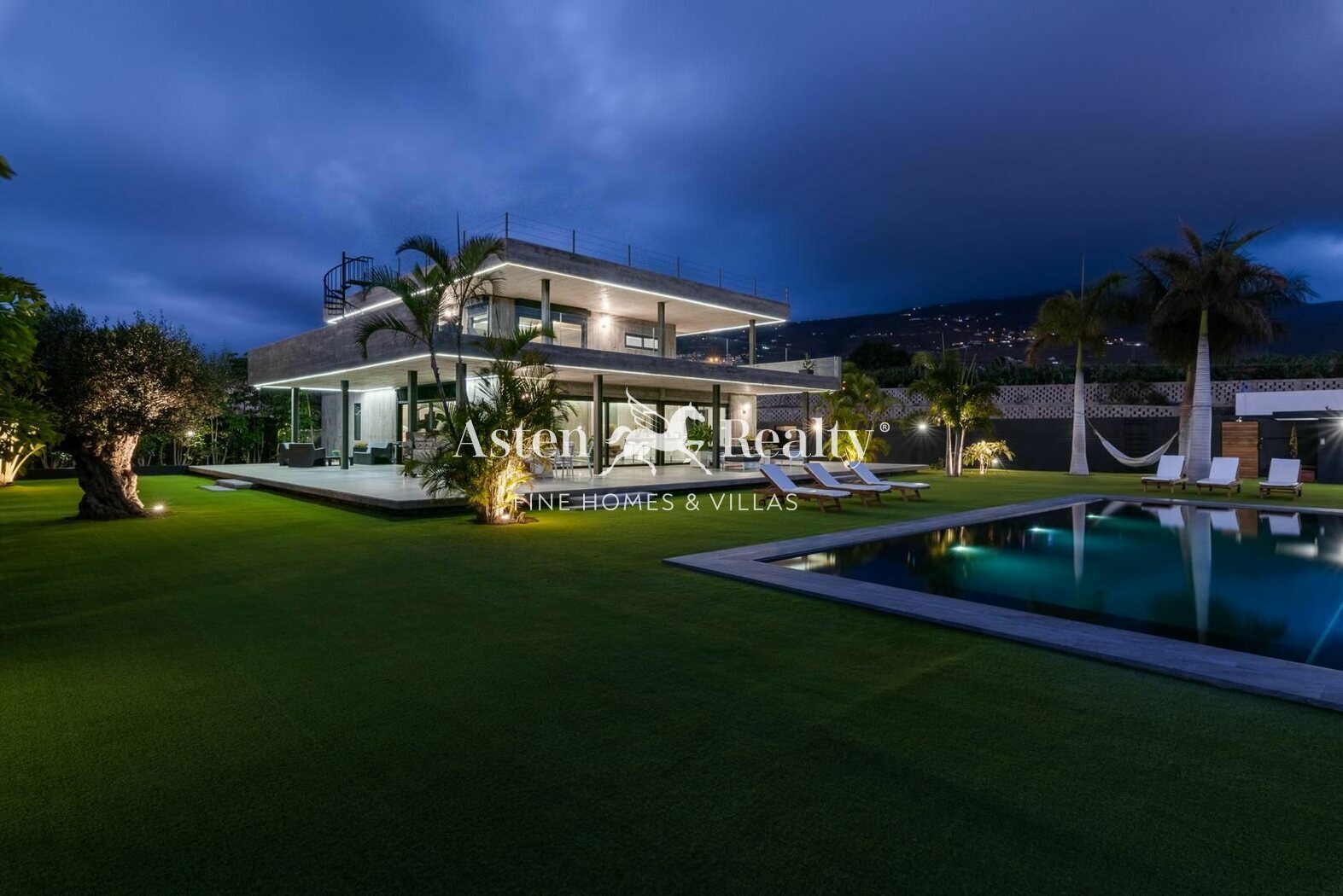 Smart-Home-System, Klimaanlage. Auf dem Dach befinden sich 30 Sonnenkollektoren für Wasser und Strom, eine Stromerzeugungsanlage mit zwei Batterien für die Nacht, einbruchhemmende Fenster, eine Garage für zwei Fahrzeuge, eine Alarmanlage und ein Aufzug.