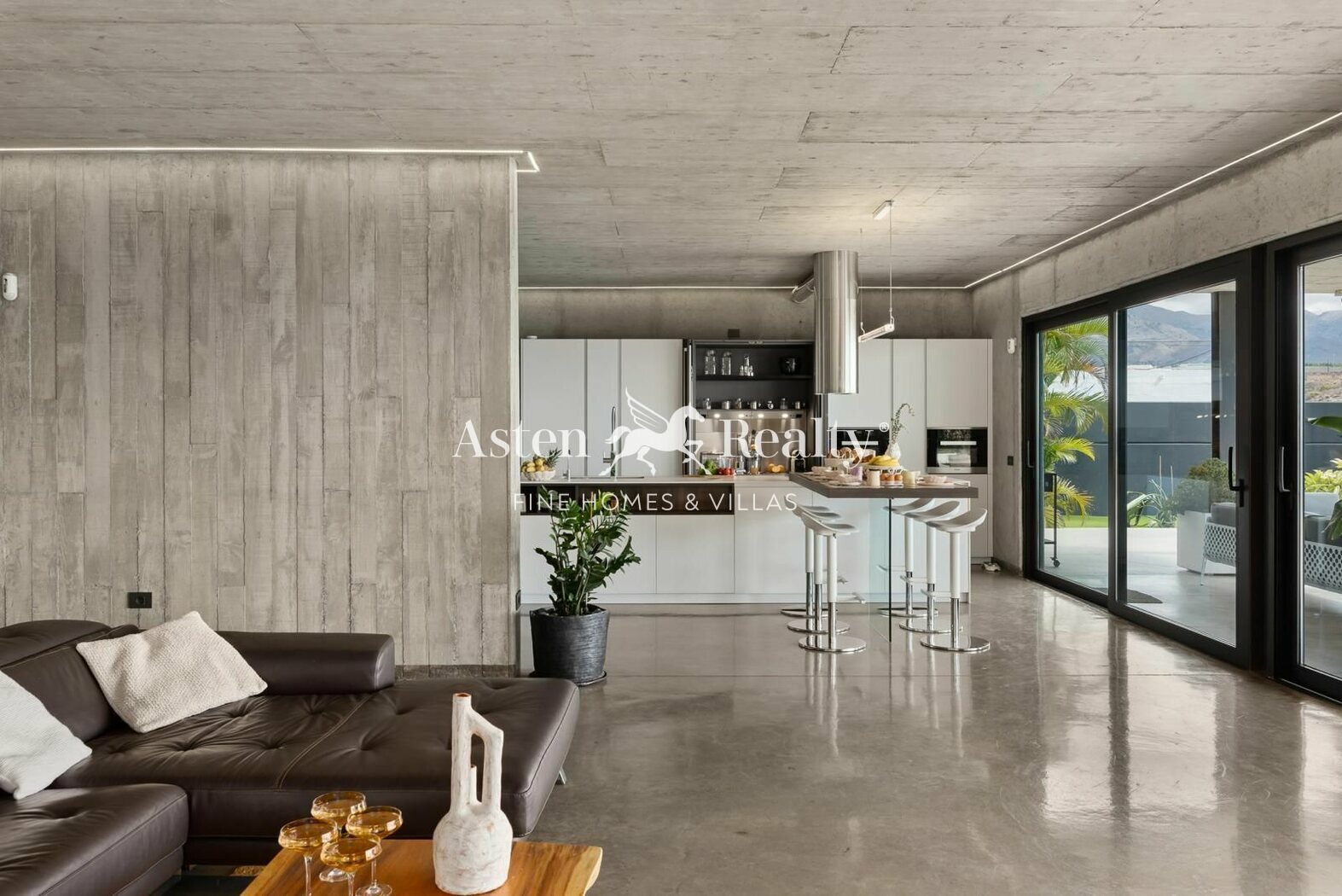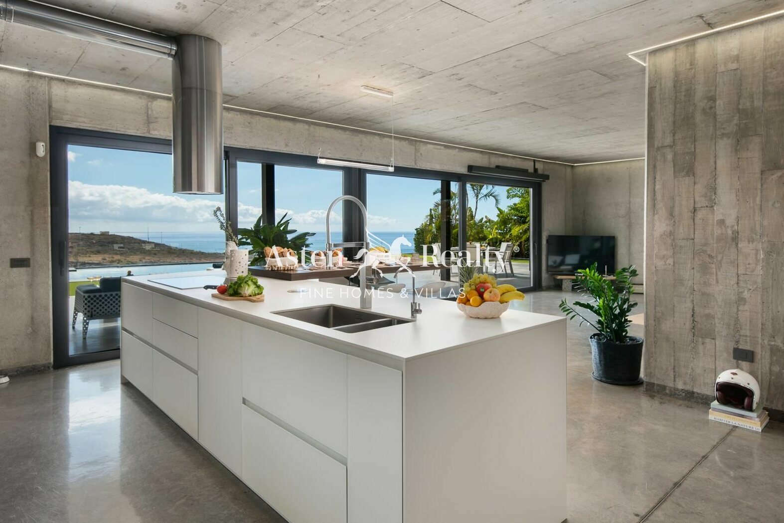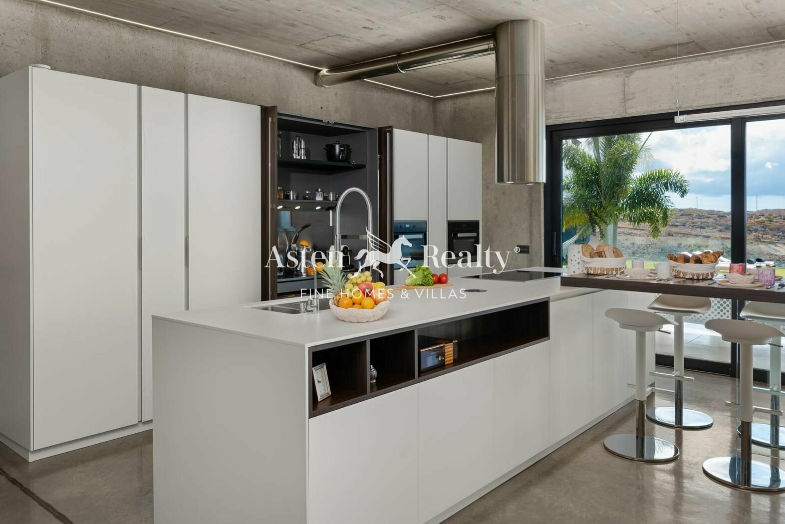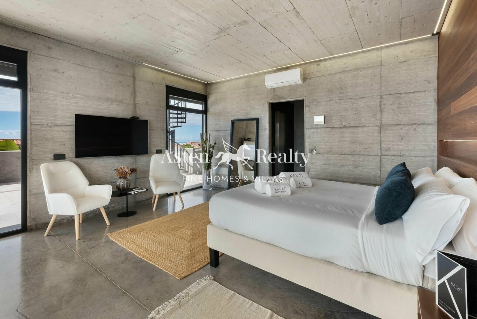 Villa im brutalistischen Stil mit minimalistischem Design. Die Villa wurde auf drei Ebenen entworfen, verfügt über einen Aufzug, offene, helle Räume und ist mit der neuesten Technologie ausgestattet. Im großzügigen Außenbereich befindet sich ein großer beheizter Infinity-Pool mit atemberaubendem Meerblick, eine Toilette, ein gemütlicher überdachter Bereich und ein exklusives Poolhaus. Die Villa verfügt über ein geräumiges Wohnzimmer mit einer hochwertigen offenen Küche und einem modernen Heimkino. Jedes Zimmer hat ein eigenes Bad und es gibt eine zusätzliche Toilette.