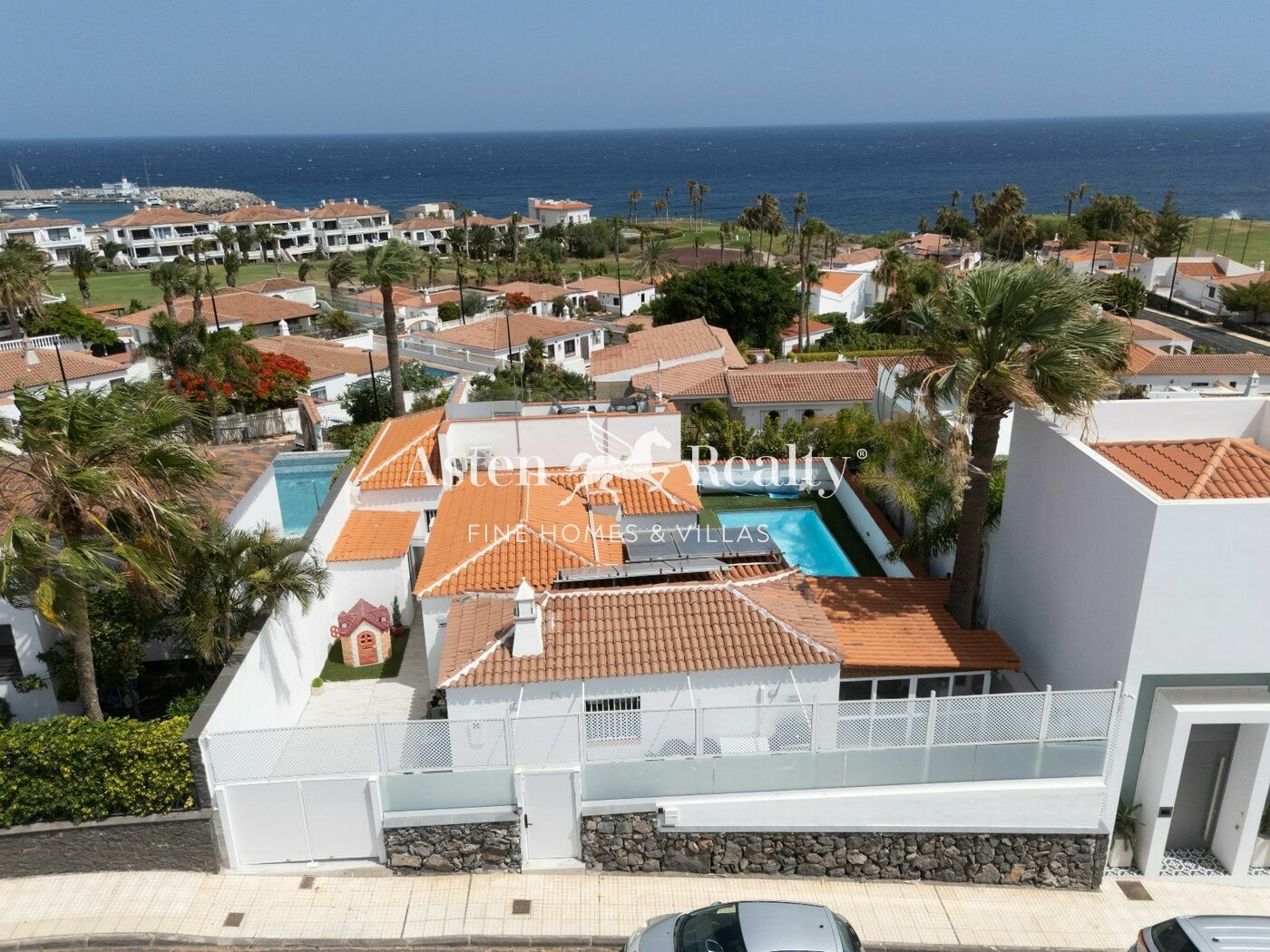 Exklusive Luxusvilla in Amarilla Golf, Teneriffa Süd. Diese spektakuläre, kürzlich renovierte Immobilie befindet sich in einer der ruhigsten und begehrtesten Gegenden im Süden der Insel, in der renommierten Anlage Amarilla Golf. Die Villa verbindet zeitgenössisches Design, Komfort und traumhafte Räumlichkeiten und bietet ein einzigartiges Wohnerlebnis direkt am Meer.