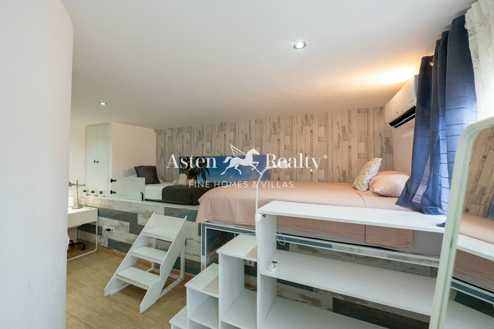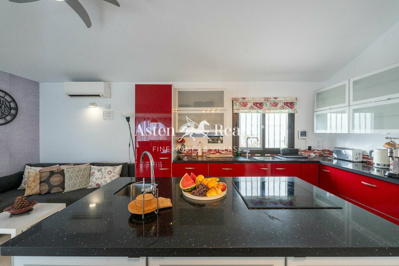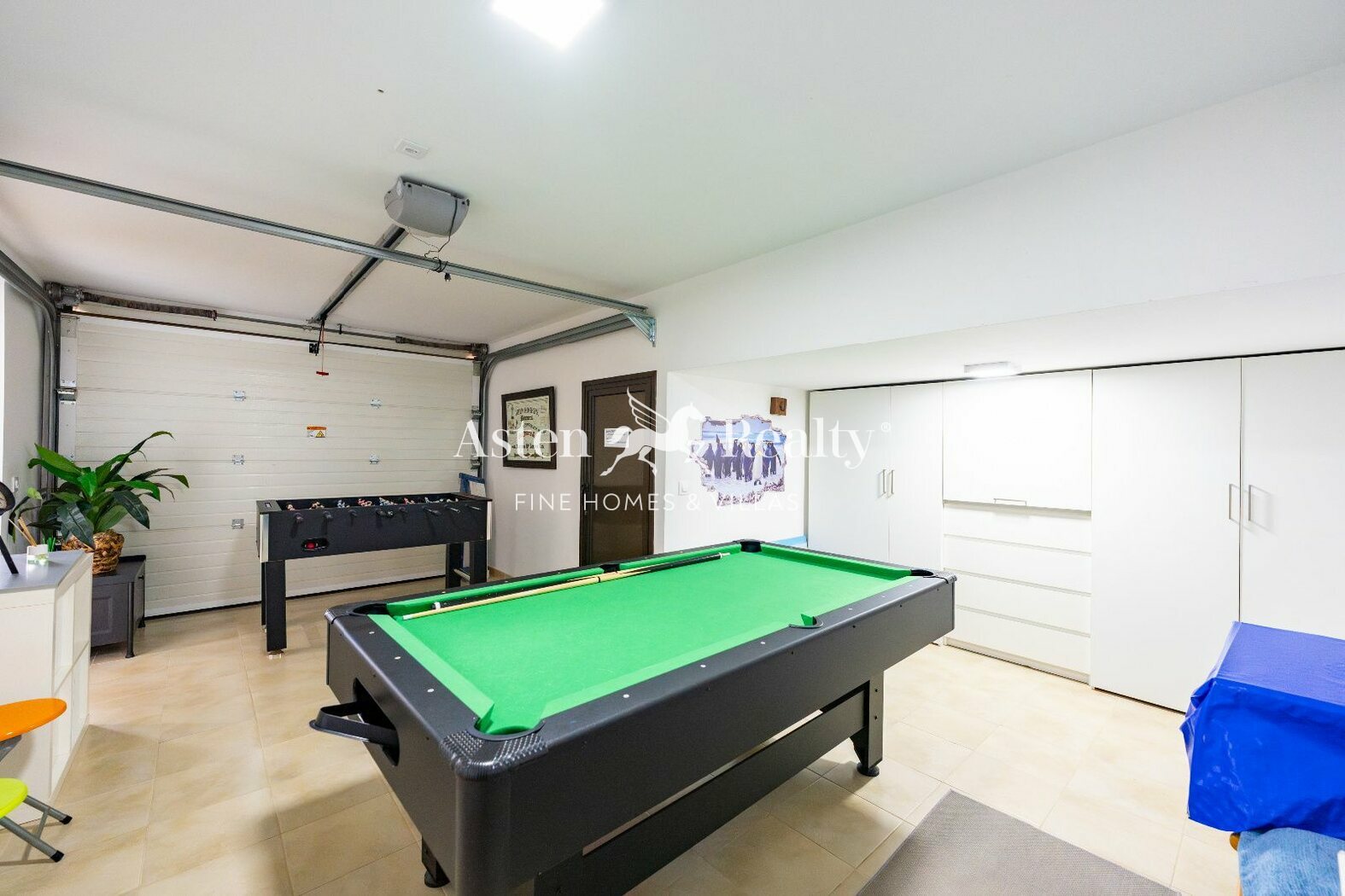 Sie verfügt über einen großen beheizten Privatpool, umgeben von Entspannungsbereichen, einen Whirlpool auf dem Dach mit atemberaubendem Meerblick, eine elegante Terrasse mit balinesischem Spa-Bett und modernstem Rasen, moderne und helle Innenräume mit Klimaanlage und WLAN, ein komplettes Spielzimmer, ideal für Familienunterhaltung, und großzügige Wohn- und Essbereiche, die für Komfort und Geselligkeit ausgelegt sind.