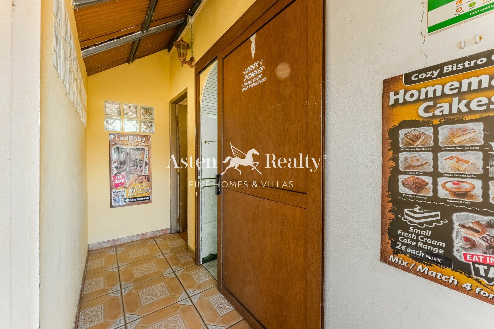 Im Inneren befinden sich eine vollständig ausgestattete Bar, Küche, Lagerraum und Kundentoiletten.