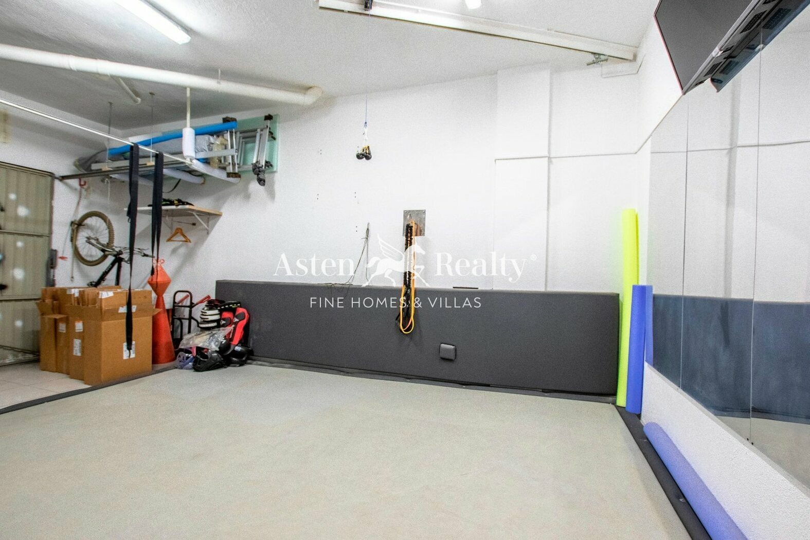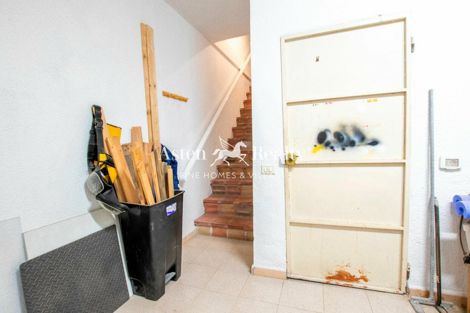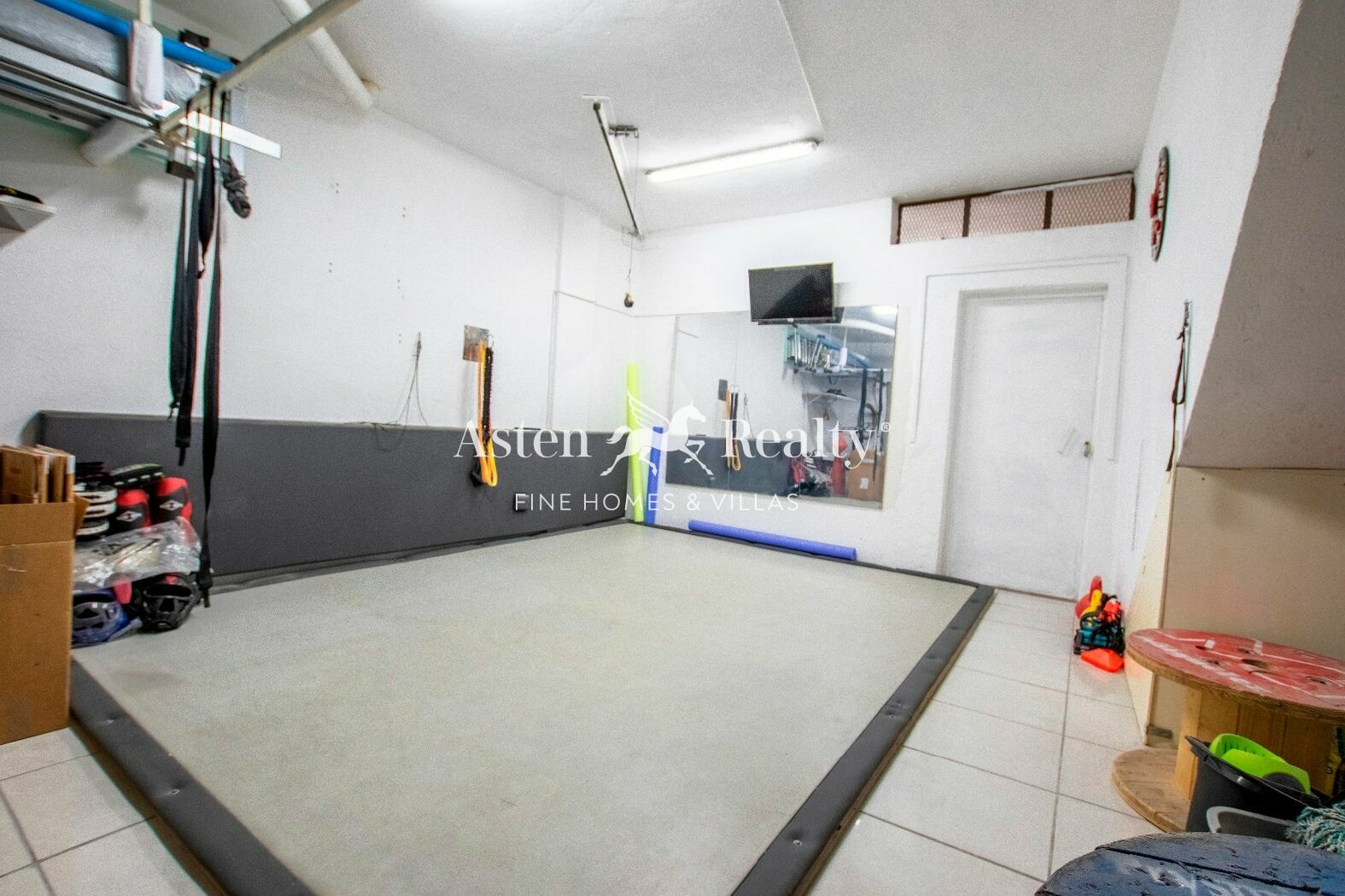 Das auf 3 Ebenen erbaute Anwesen verfügt im Untergeschoss über eine geräumige Garage und einen Abstellraum von mehr als 50 m2. Im Erdgeschoss befinden sich ein sehr helles Wohn-Esszimmer, eine separate Küche, eine Toilette und eine große Sonnenterrasse mit Zugang zum Inneren der Anlage.