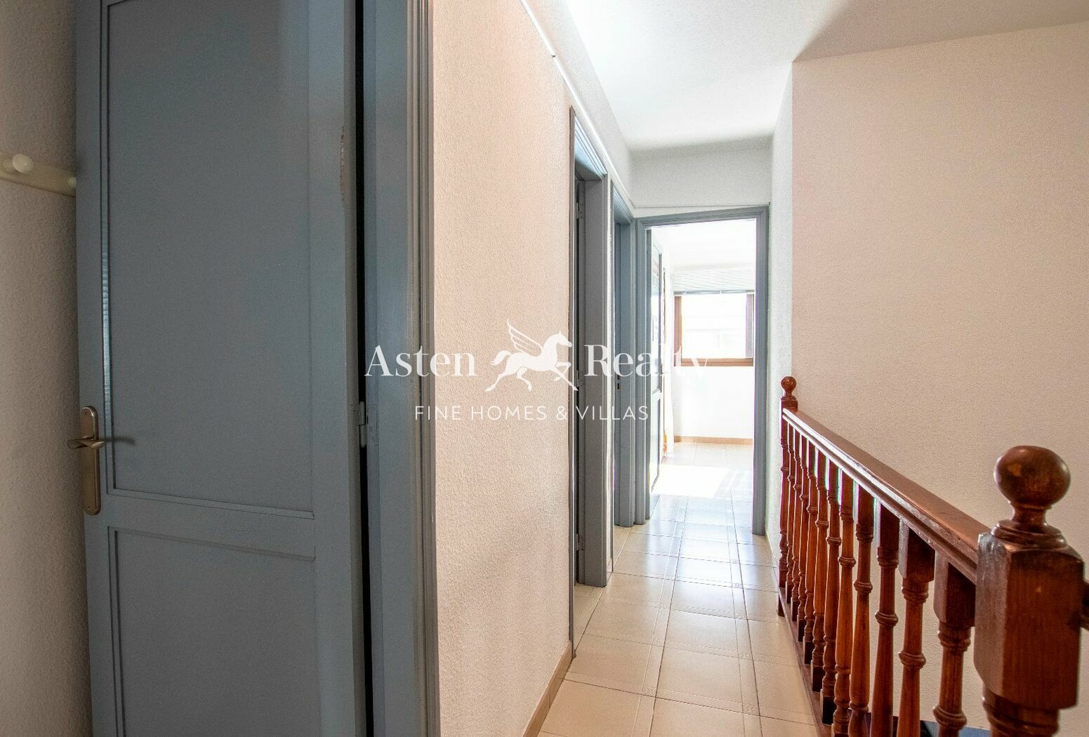 Der erste Stock ist über eine Innentreppe erreichbar und beherbergt die vier Schlafzimmer und ein renoviertes Badezimmer. Eines der Schlafzimmer hat Zugang zu einem Balkon, von dem aus man einen seitlichen Meerblick genießen kann.
