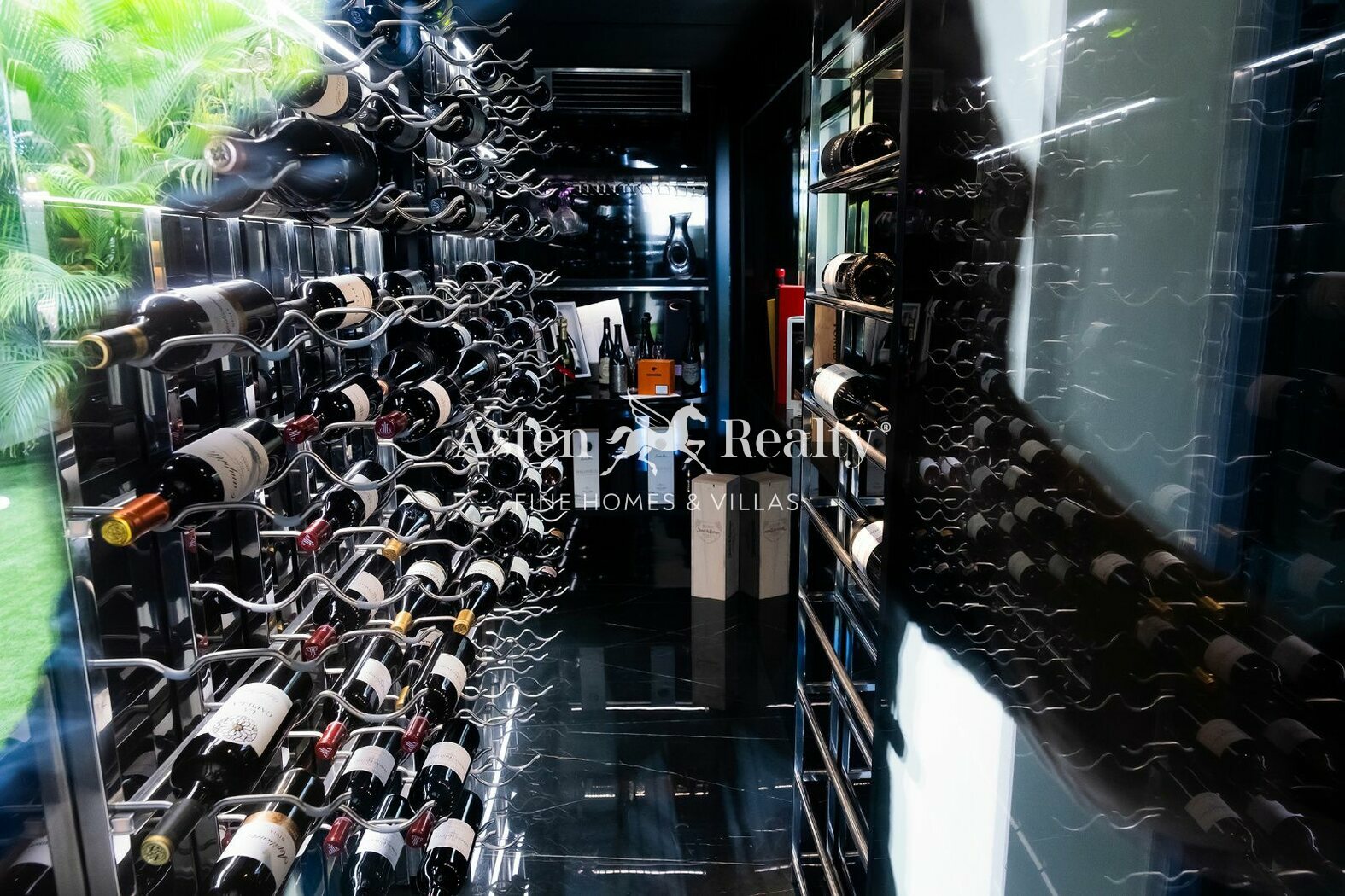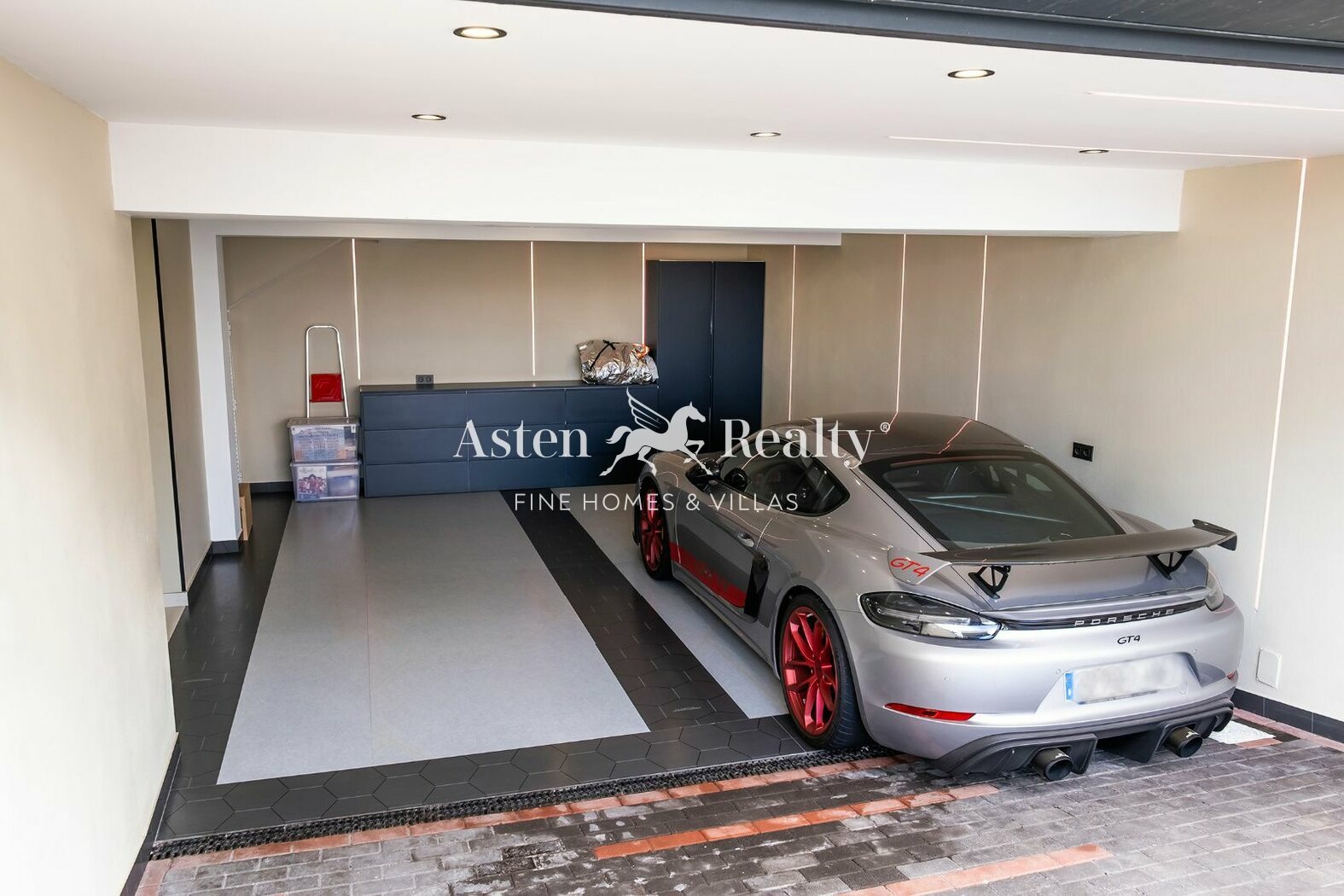 Die untere Ebene der Villa erweitert die Möglichkeiten: eine private Garage für zwei Fahrzeuge, Abstellraum, ein Mehrzweckraum mit komplettem Bad und ein sorgfältig gestalteter Weinkeller für Liebhaber des guten Weins.