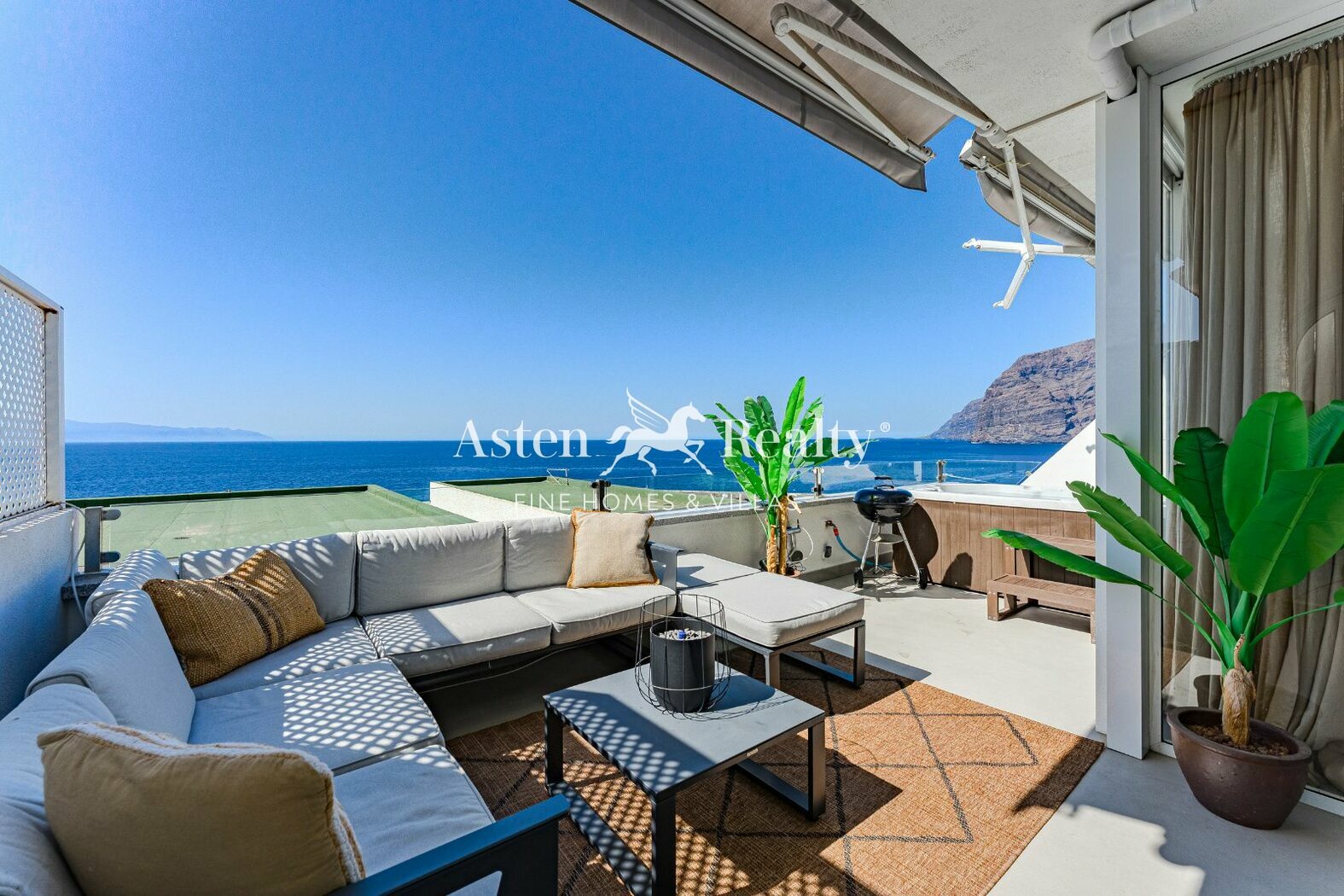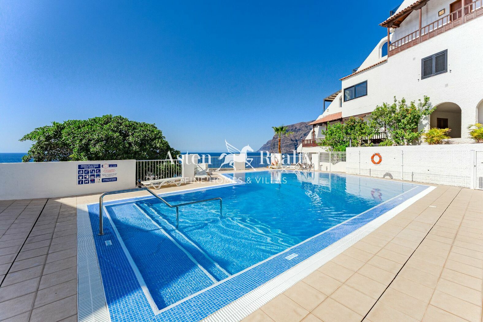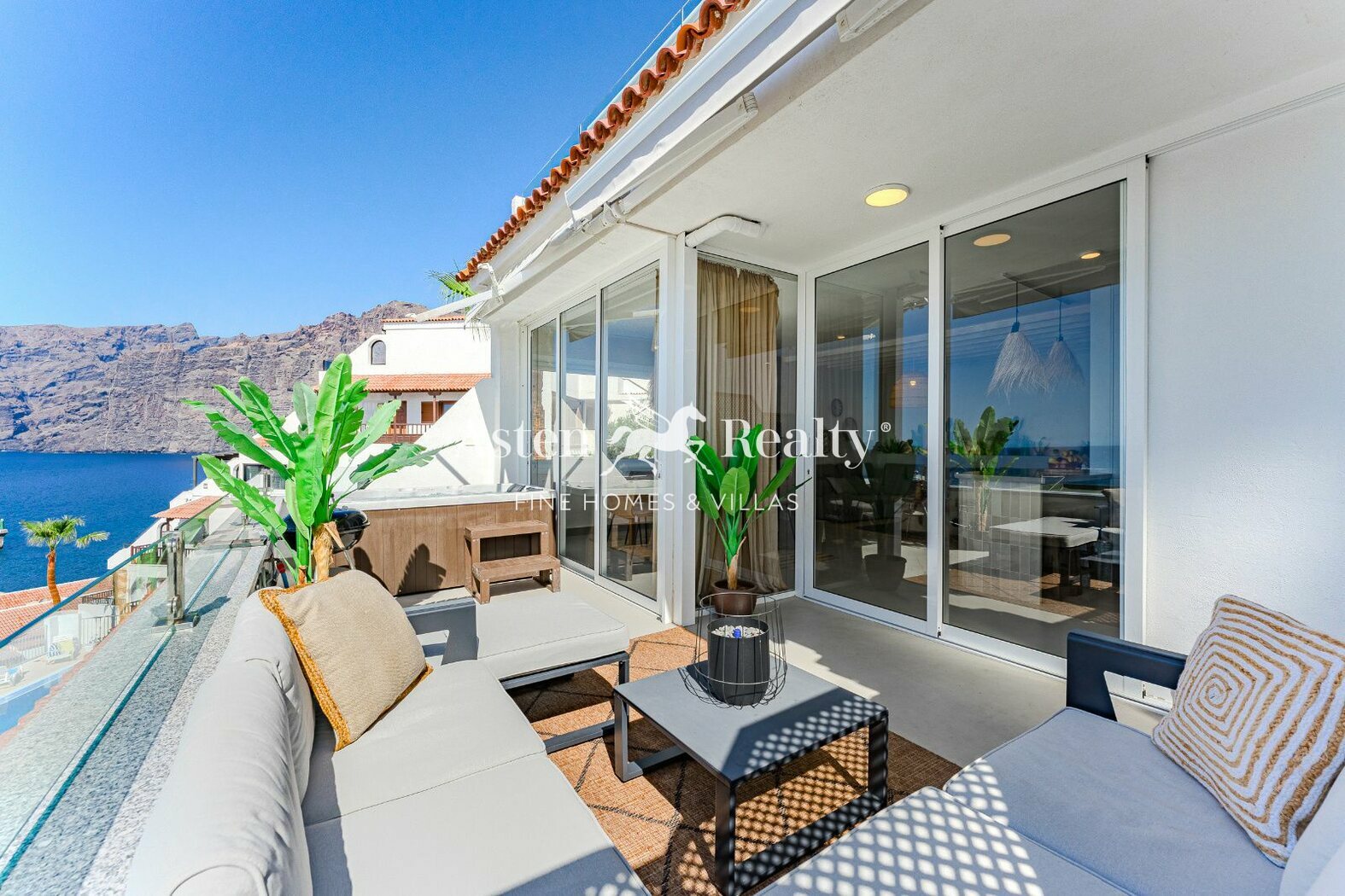 Es befindet sich in der renommierten Anlage „Tamara A” gegenüber dem Yachthafen von Los Gigantes und bietet einen spektakulären Blick auf das Meer und die majestätischen Klippen.