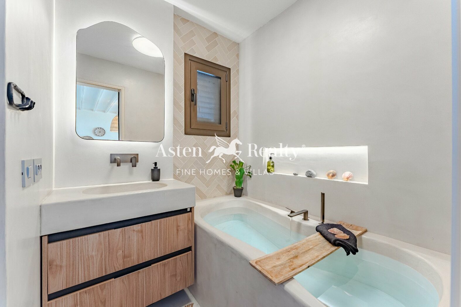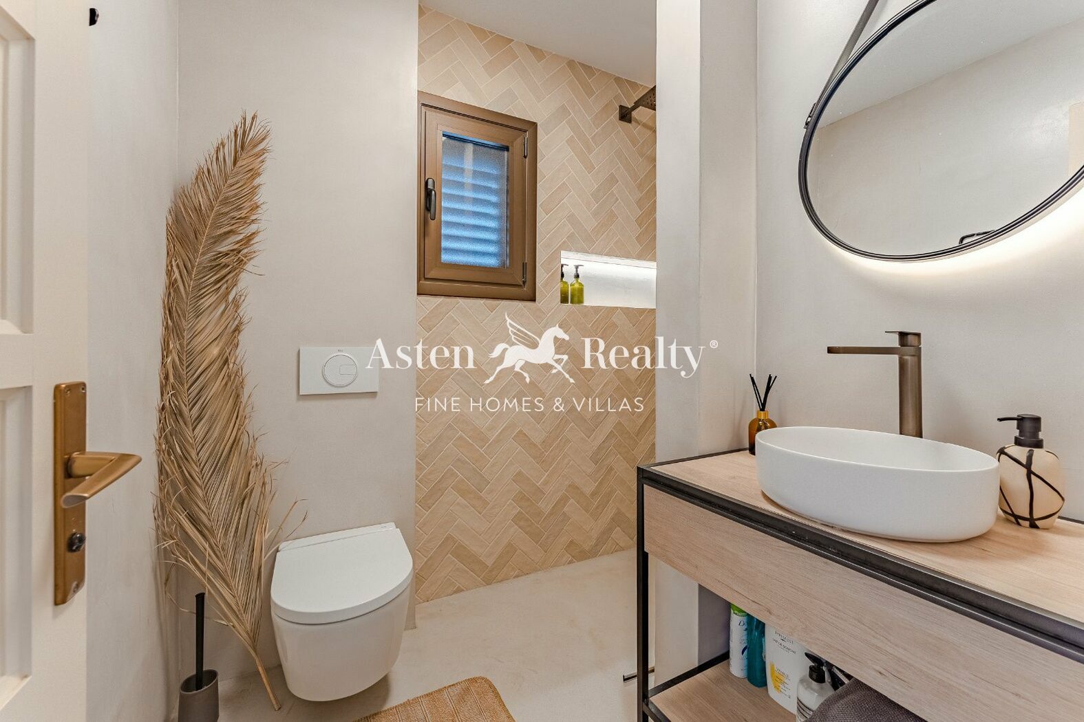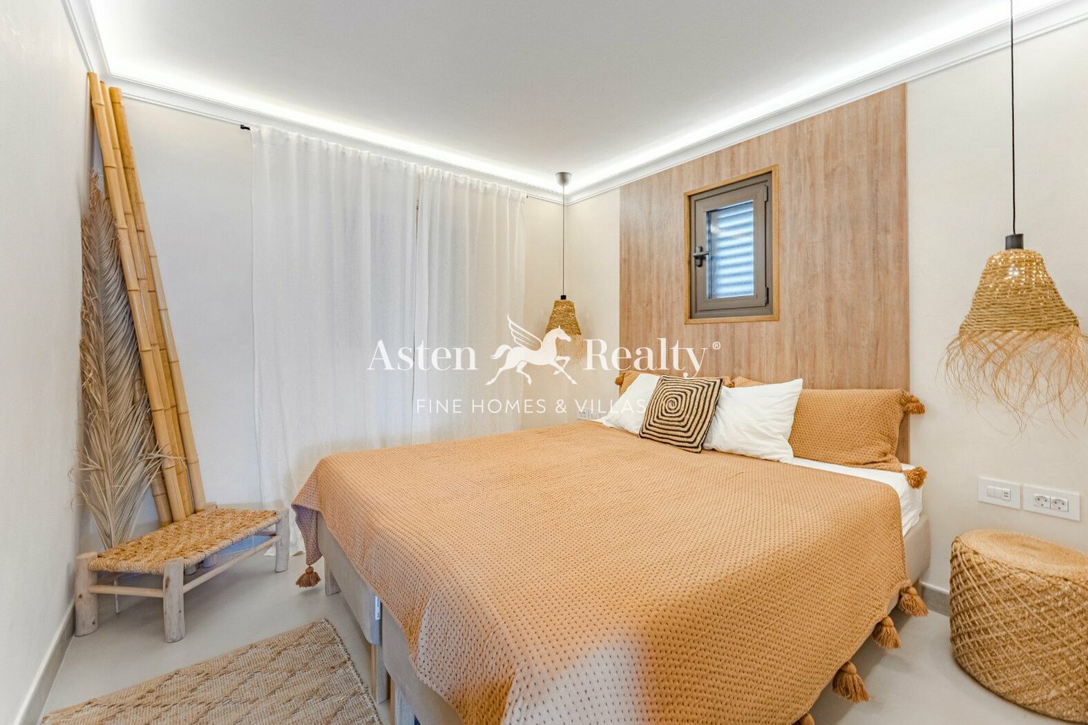 Es verfügt über 2 geräumige Schlafzimmer, 2 Designerbäder aus Mikrozement und ein geräumiges Wohnzimmer mit offener Küche, das mit exklusiven Möbeln und hochwertigen Oberflächen ausgestattet ist. Jeder Winkel wurde geschmackvoll und stimmig gestaltet und schafft eine Atmosphäre von entspannter Raffinesse.