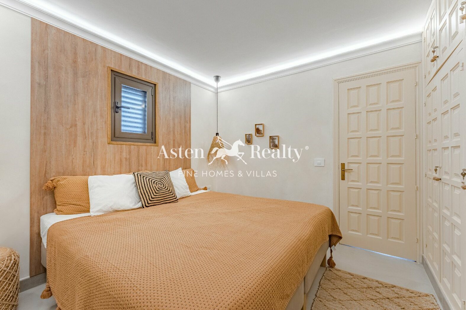 Dieses elegante, kürzlich renovierte Apartment verbindet zeitgenössisches Boho-Design mit natürlichen Materialien, hochwertigen Möbeln und einer sorgfältigen Auswahl an Details, die Wärme, Ausgewogenheit und Komfort vermitteln.