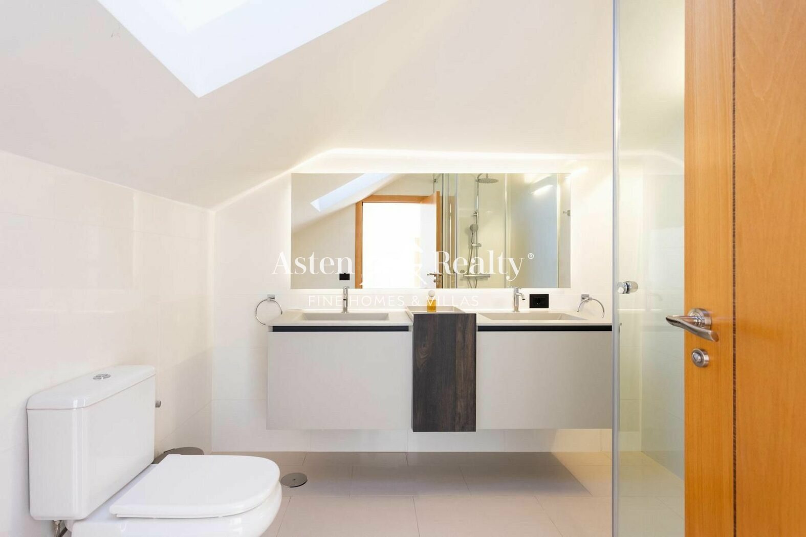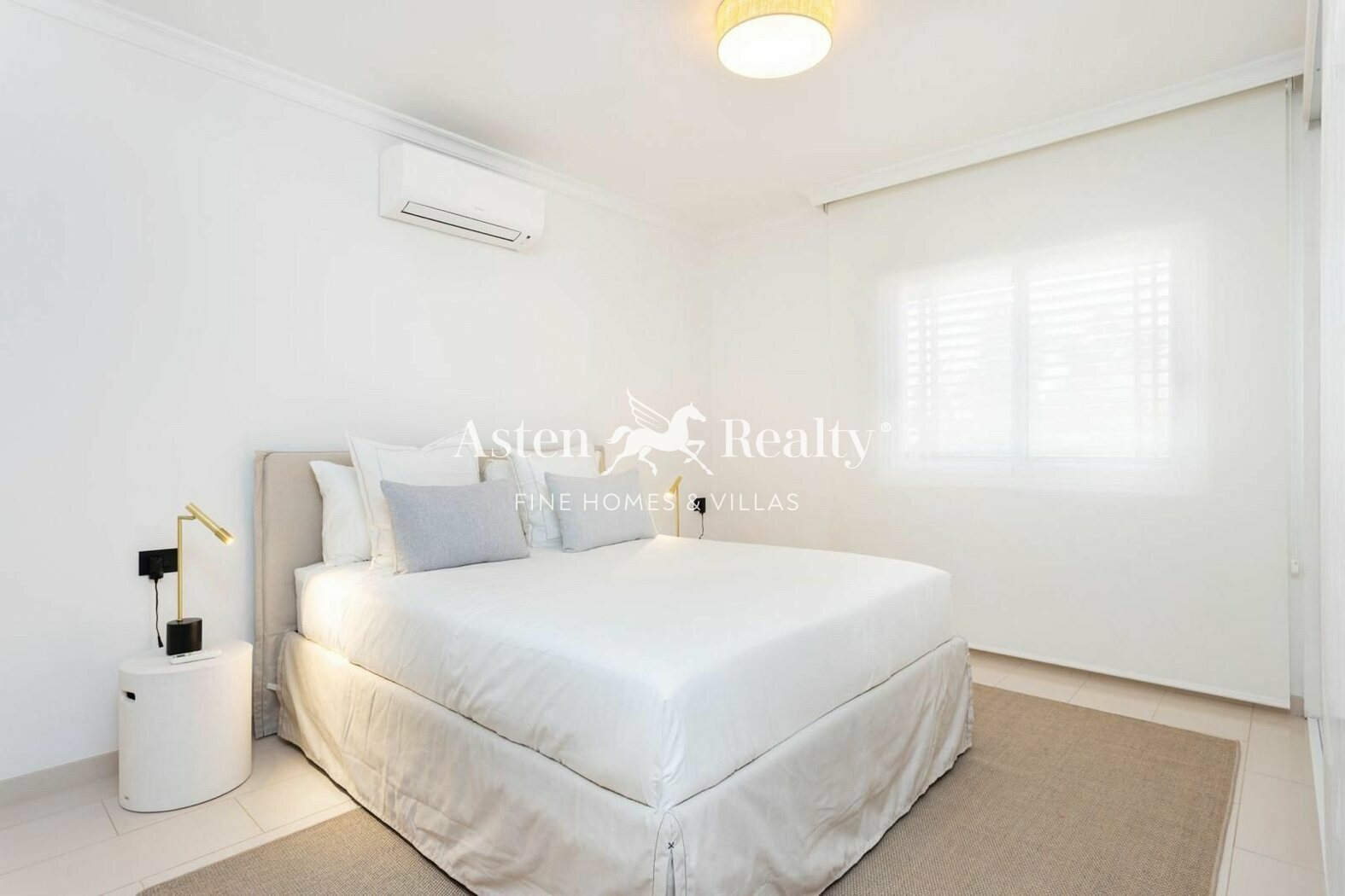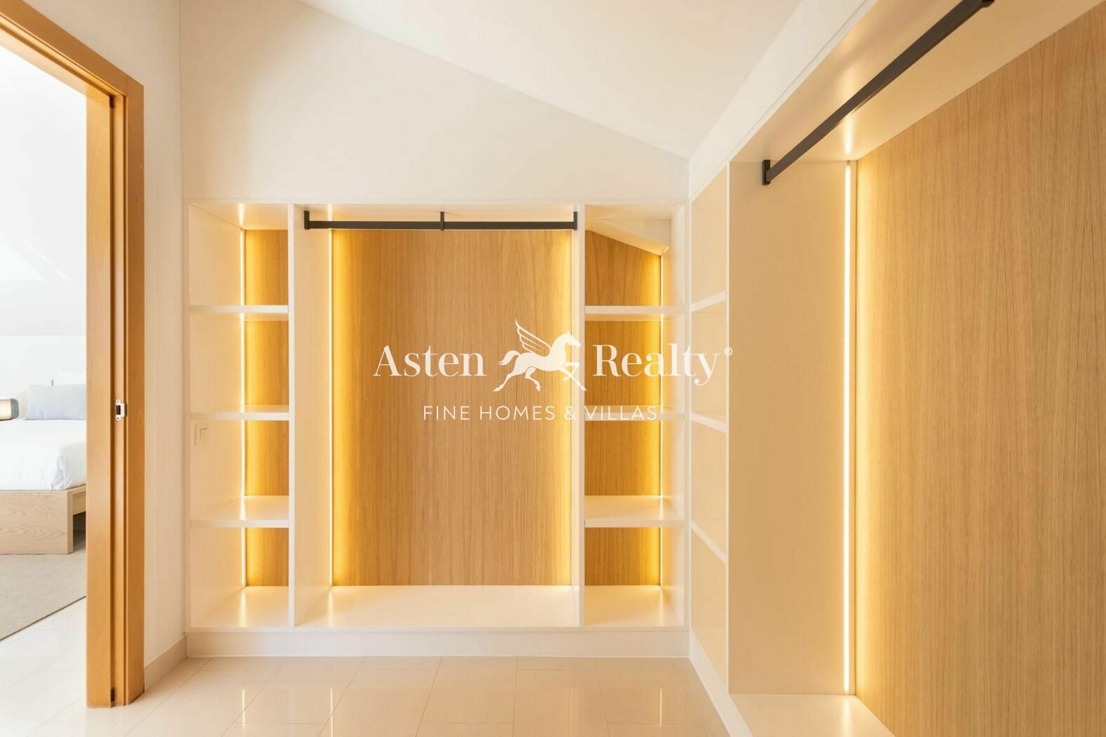 Die Etage, die der Hauptsuite vorbehalten ist, wurde als wahrer privater Rückzugsort konzipiert, mit Ankleidezimmer, modernem Badezimmer und einer Terrasse, von der aus man einen atemberaubenden Blick auf den Atlantik und den Golfplatz genießt. Das separate Apartment verleiht der Immobilie zusätzliche Vielseitigkeit und ermöglicht es, Gäste in absoluter Privatsphäre zu beherbergen oder den Raum für berufliche oder Urlaubszwecke zu nutzen.