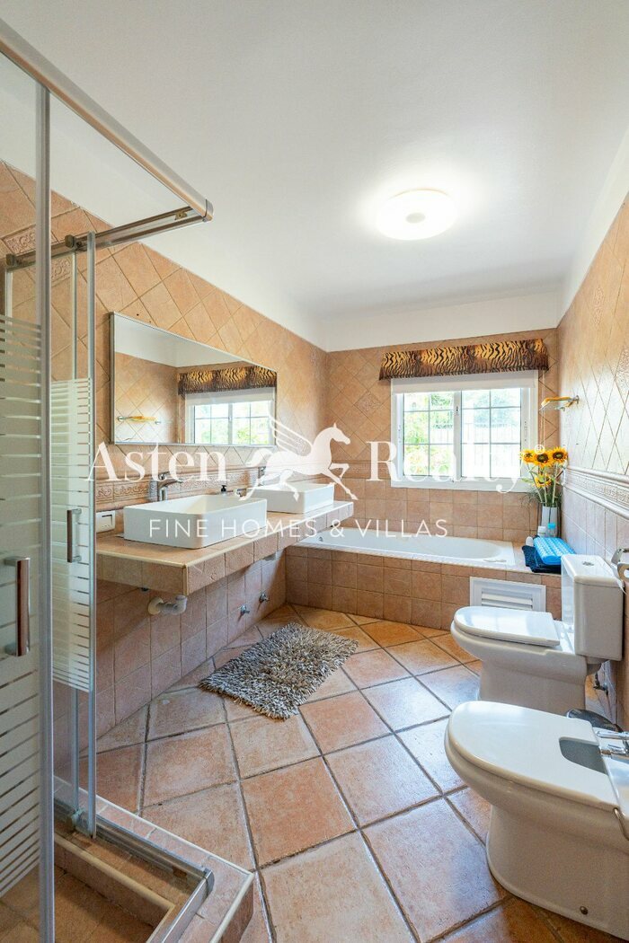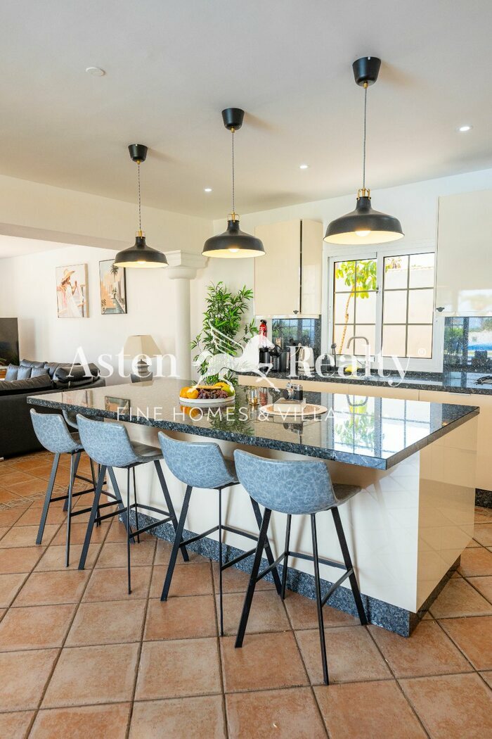La propiedad cuenta con una cocina independiente totalmente equipada, con encimera amplia, pensada tanto para la preparación de menús familiares como para quienes disfrutan de la cocina. Sus siete habitaciones, distribuidas de forma funcional a lo largo de la villa, ofrecen amplitud, comodidad y privacidad para todos los huéspedes. Además, dispone de una sala de juegos integrada, orientada al entretenimiento y las dinámicas sociales, con espacios para diversas actividades.