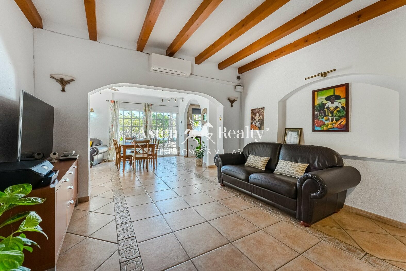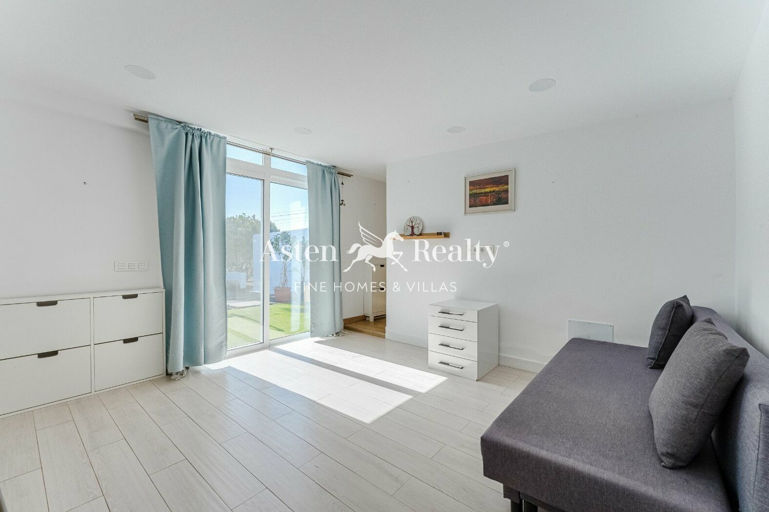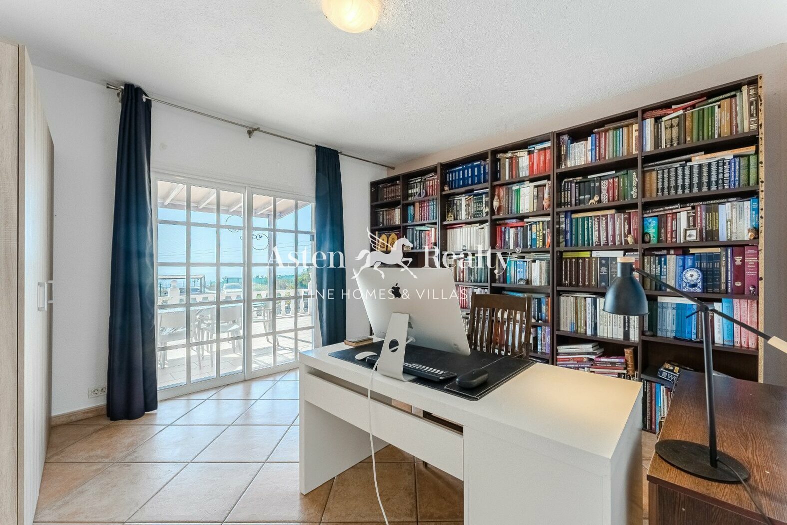 La casa principal dispone de 3 dormitorios, 2 baños (uno de ellos recién reformado), una cocina abierta conectada con el comedor y un luminoso salón con salida directa a las terrazas. Junto al dormitorio principal hay un despacho que, si se desea, podría transformarse en una cuarta habitación. Todo el conjunto está en una sola planta, sin escaleras, lo que aporta comodidad y una sensación de amplitud.