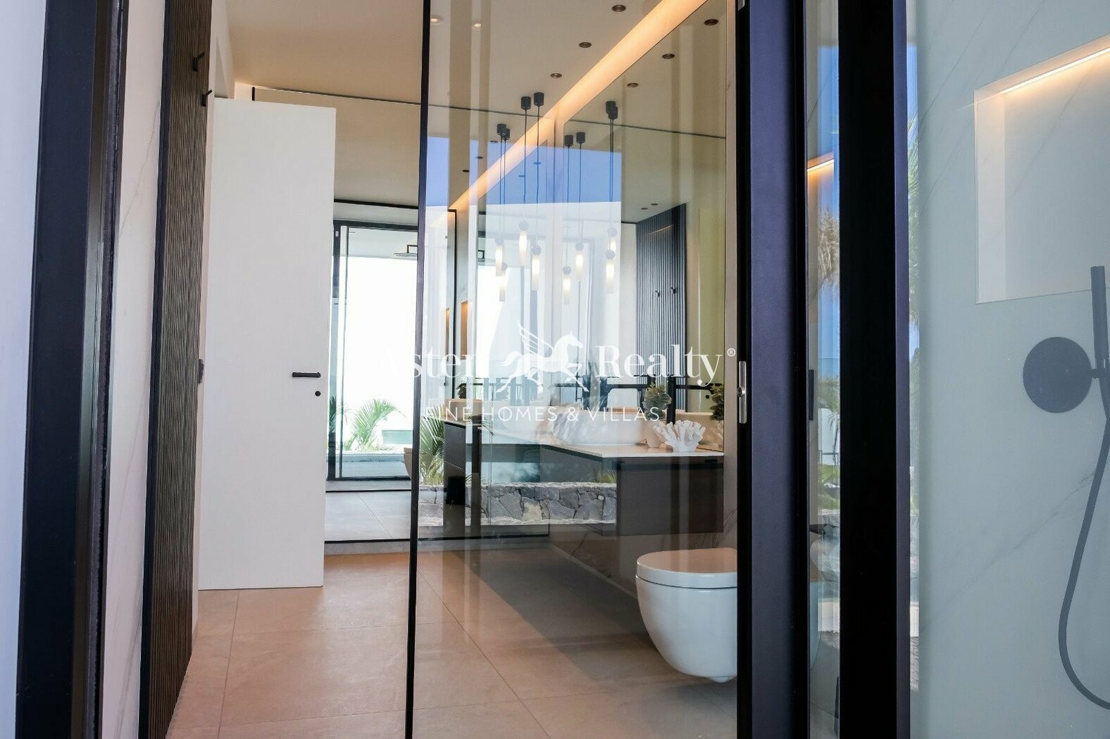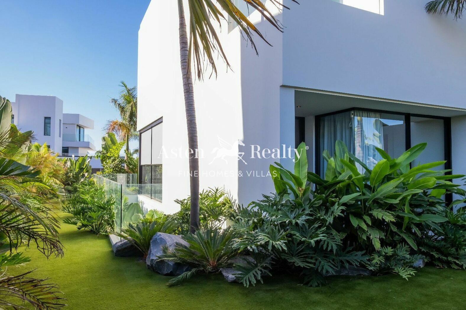 Con 430 m2 construidos sobre una parcela de 772 m2, la propiedad alberga cuatro dormitorios en suite con armarios empotrados y acceso directo a un exuberante jardín tropical. La armonía entre materiales nobles, arte contemporáneo y líneas limpias crea una atmósfera de serenidad y sofisticación.