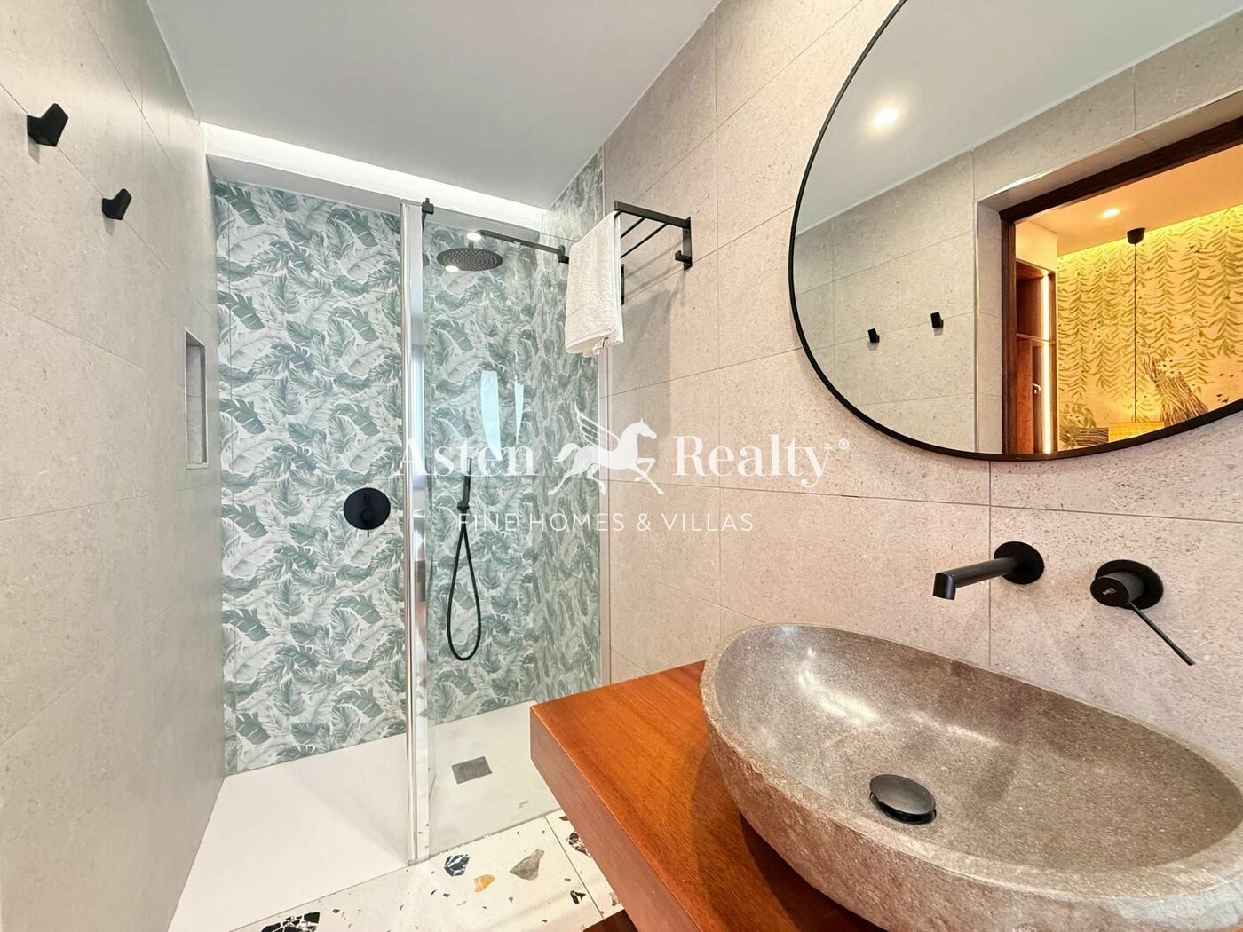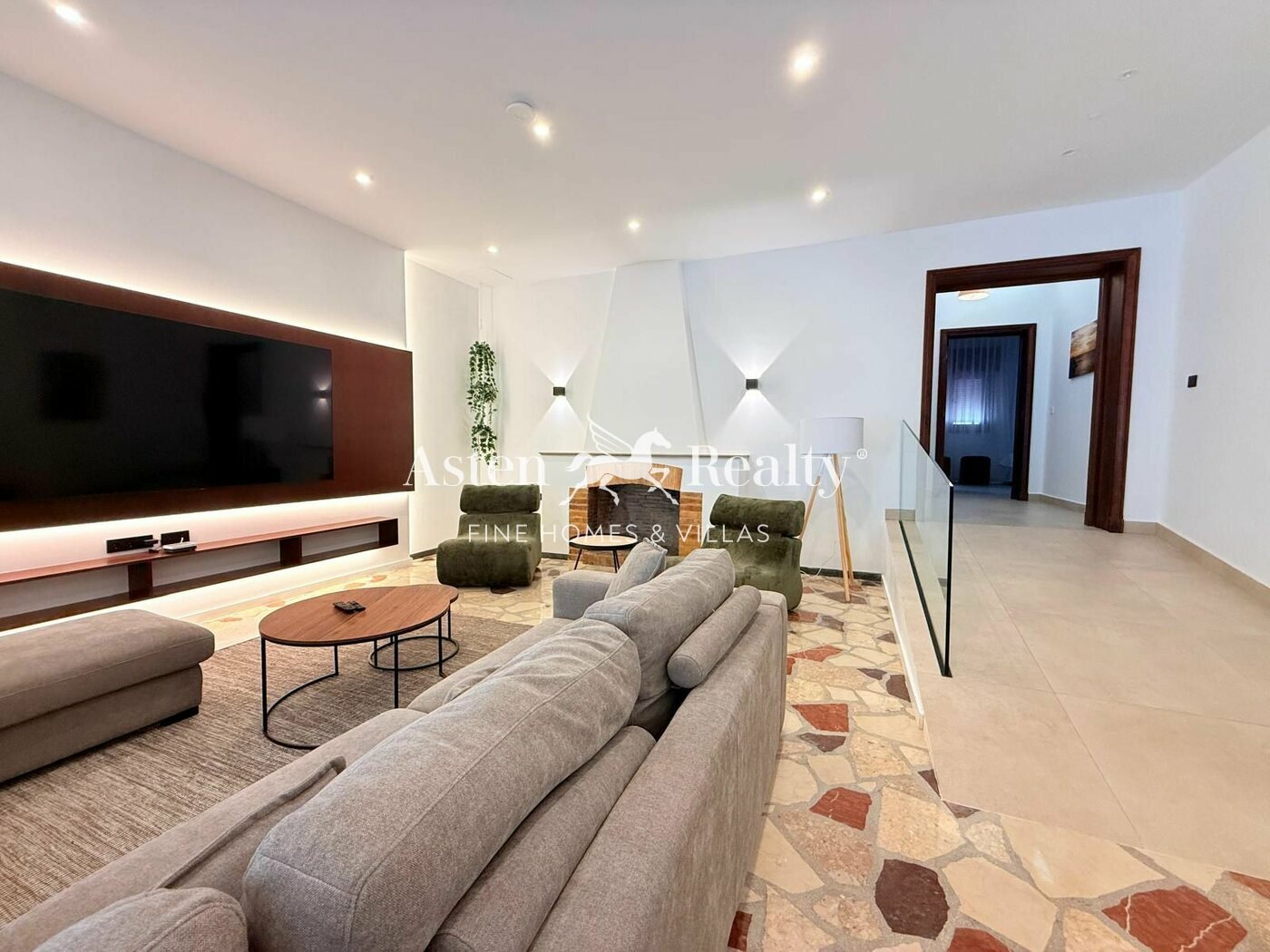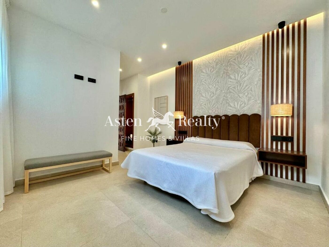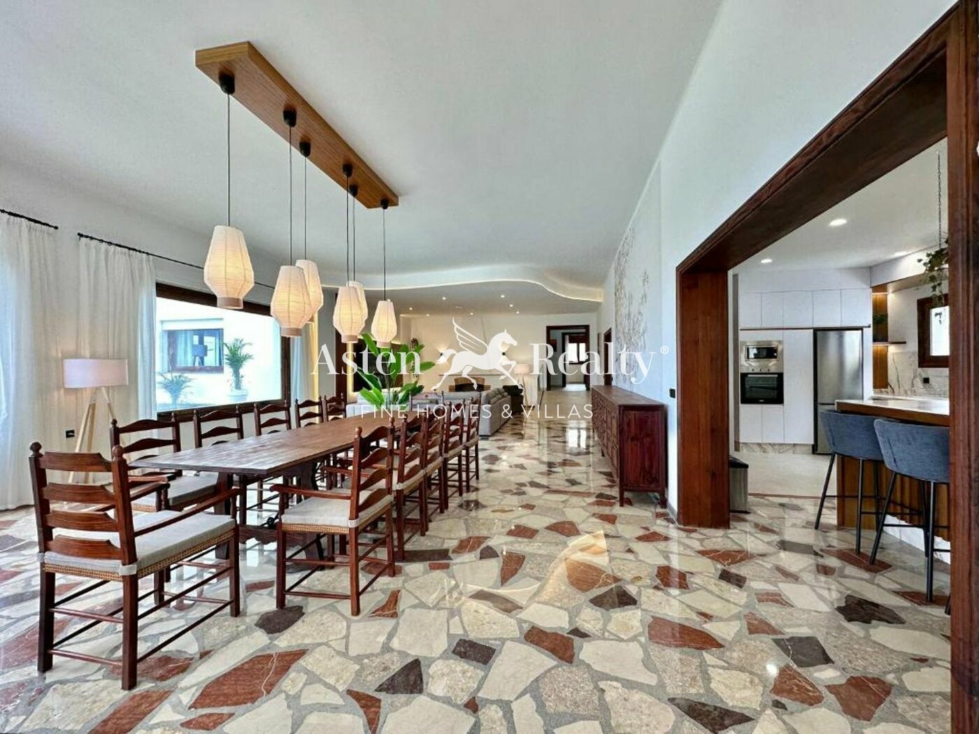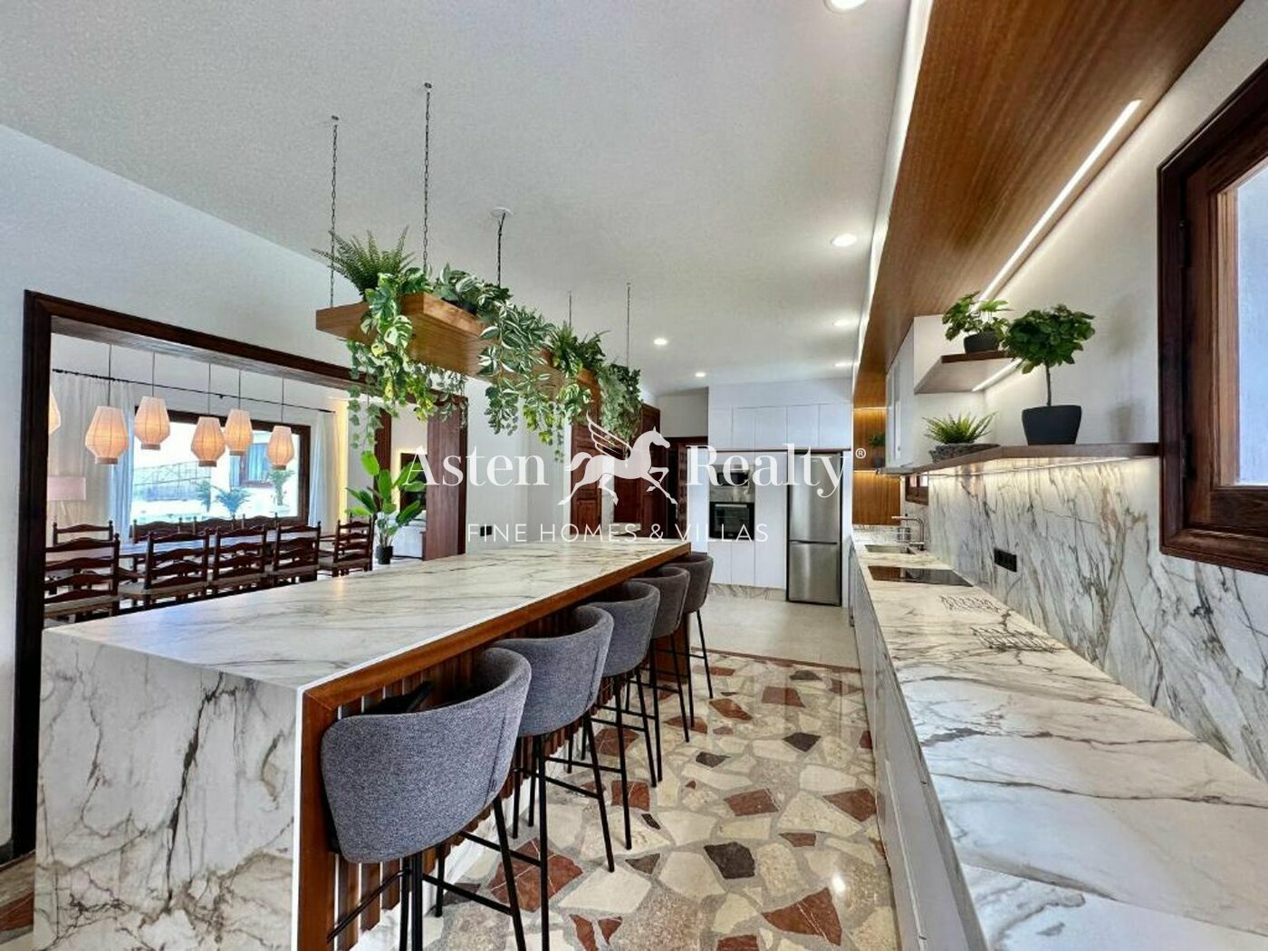 La villa principal, una antigua casa canaria con carácter, ha sido totalmente reformada respetando su encanto original. Dispone de 5 dormitorios dobles con 5 baños, un amplio salón principal con comedor, una espectacular cocina completamente equipada y un segundo salón con salida directa a una terraza exterior techada, desde donde se disfrutan magníficas vistas al mar.