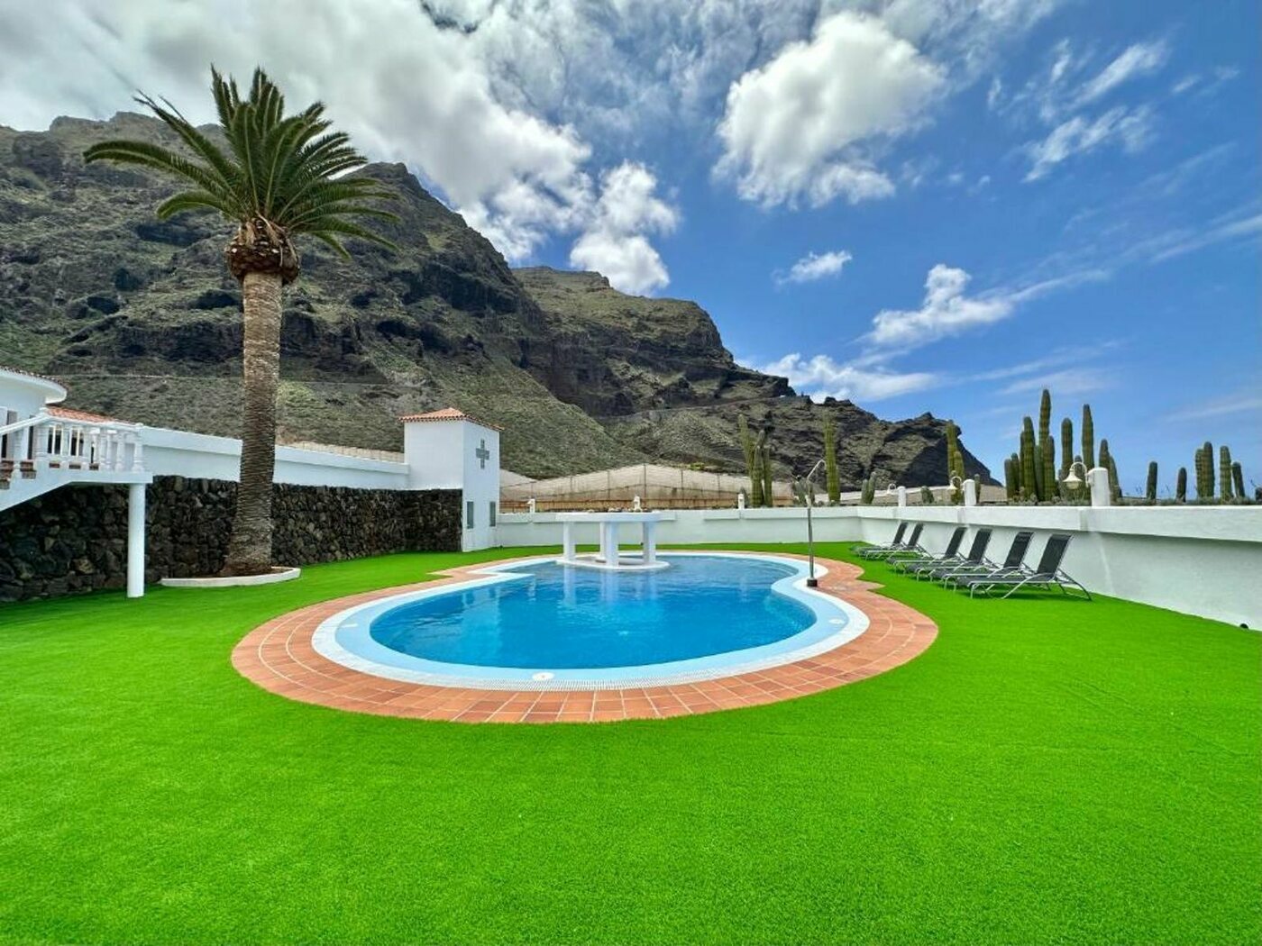En la parte superior se encuentra un gran solárium, y descendiendo hacia el mar, una piscina climatizada con zona de barbacoa y servicios. Debajo de la piscina se extiende un espectacular jardín tipo bosque de cactus, con diferentes especies y vistas abiertas al océano y a la emblemática roca de Punta Teno.