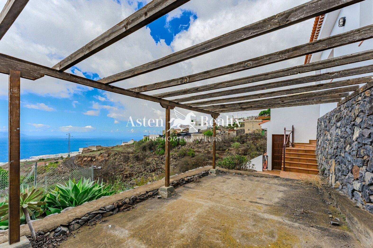 La casa de 142 m2 esta ubicada en una parcela de 963 m2, ofrece dos apartamentos independientes, garaje y un amplio patio de 36 m2, jardín de 663 m2 y dos grandes terrazas de 44 m2 y 33 m2 con impresionantes vistas al mar, a La Gomera y a atardeceres épicos.