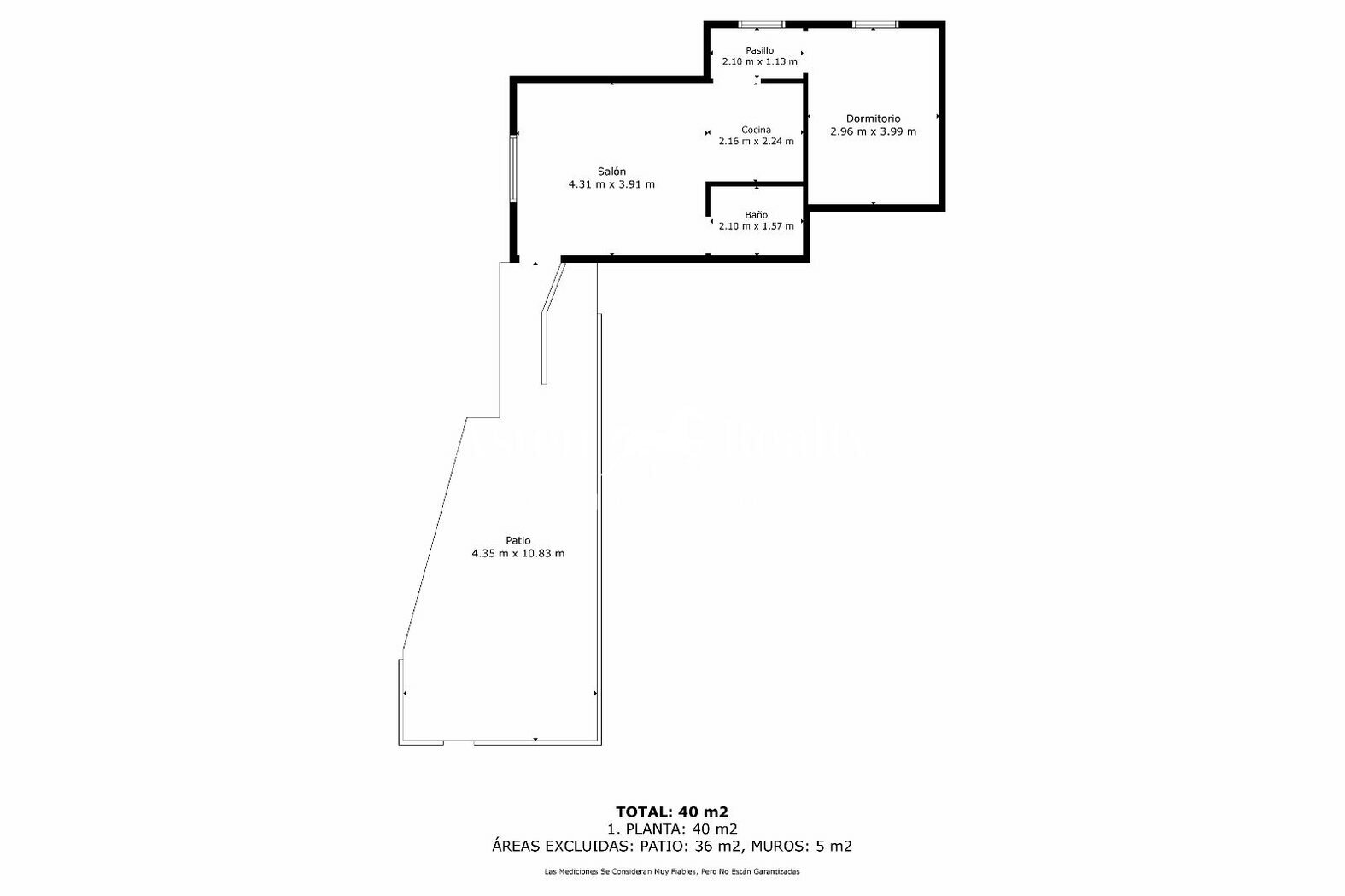 Apartamento nº 2 (40 m2): con entrada independiente, cocina, baño, salón y dormitorio. La vivienda tiene un gran potencial.