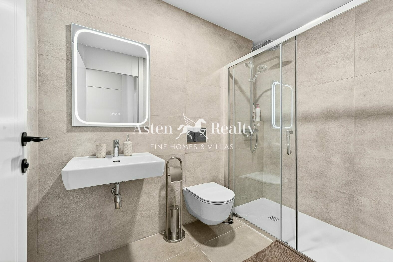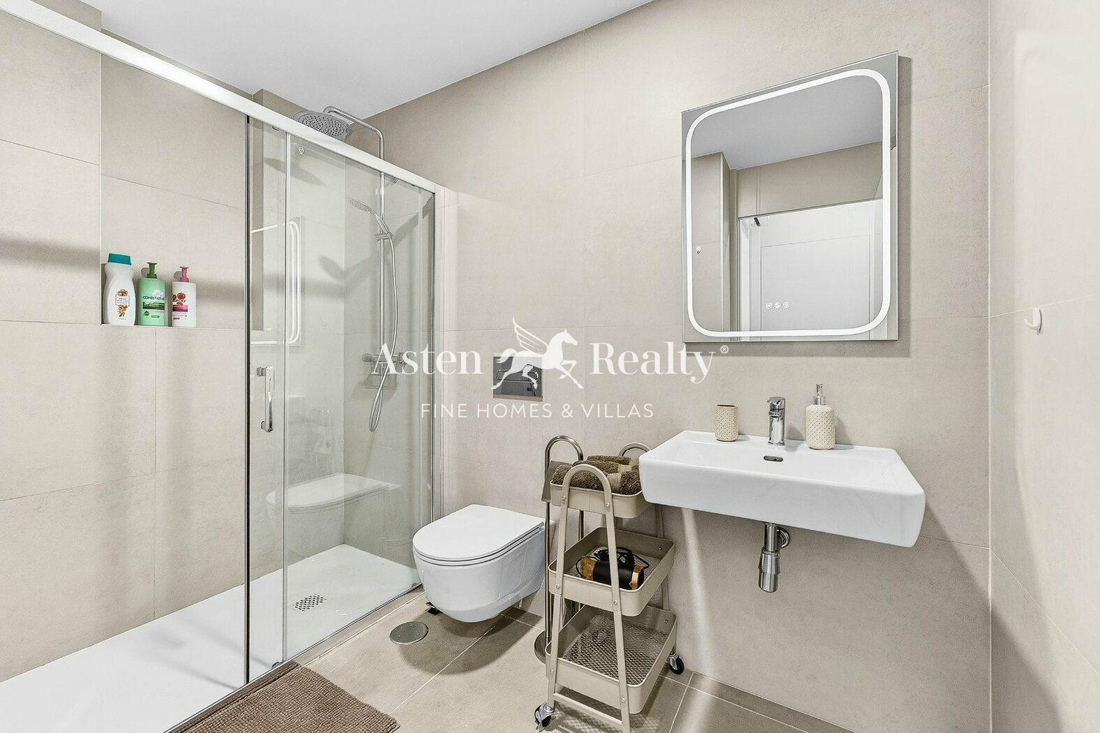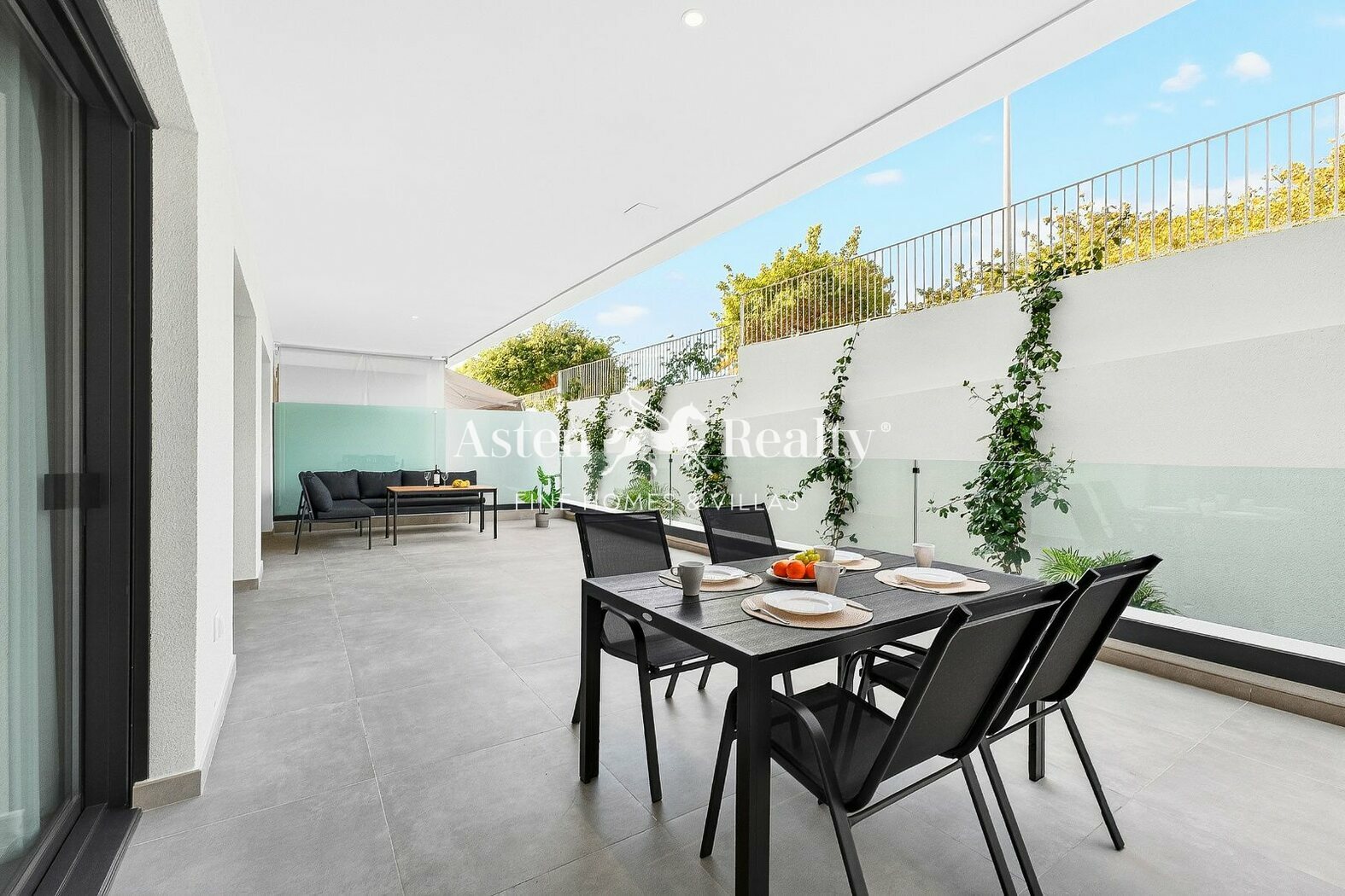 Cet impressionnant appartement de 130 m² habitables est situé au rez-de-chaussée. Il comprend 2 chambres, 2 salles de bains (dont une en suite), un grand salon-salle à manger avec cuisine américaine entièrement équipée d’appareils électroménagers haut de gamme, une buanderie, ainsi qu’une fantastique terrasse de 45 m² avec vue sur le parc public, offrant tranquillité et communion avec la nature. Il est équipé de volets roulants électriques dans toutes les pièces et de la climatisation.