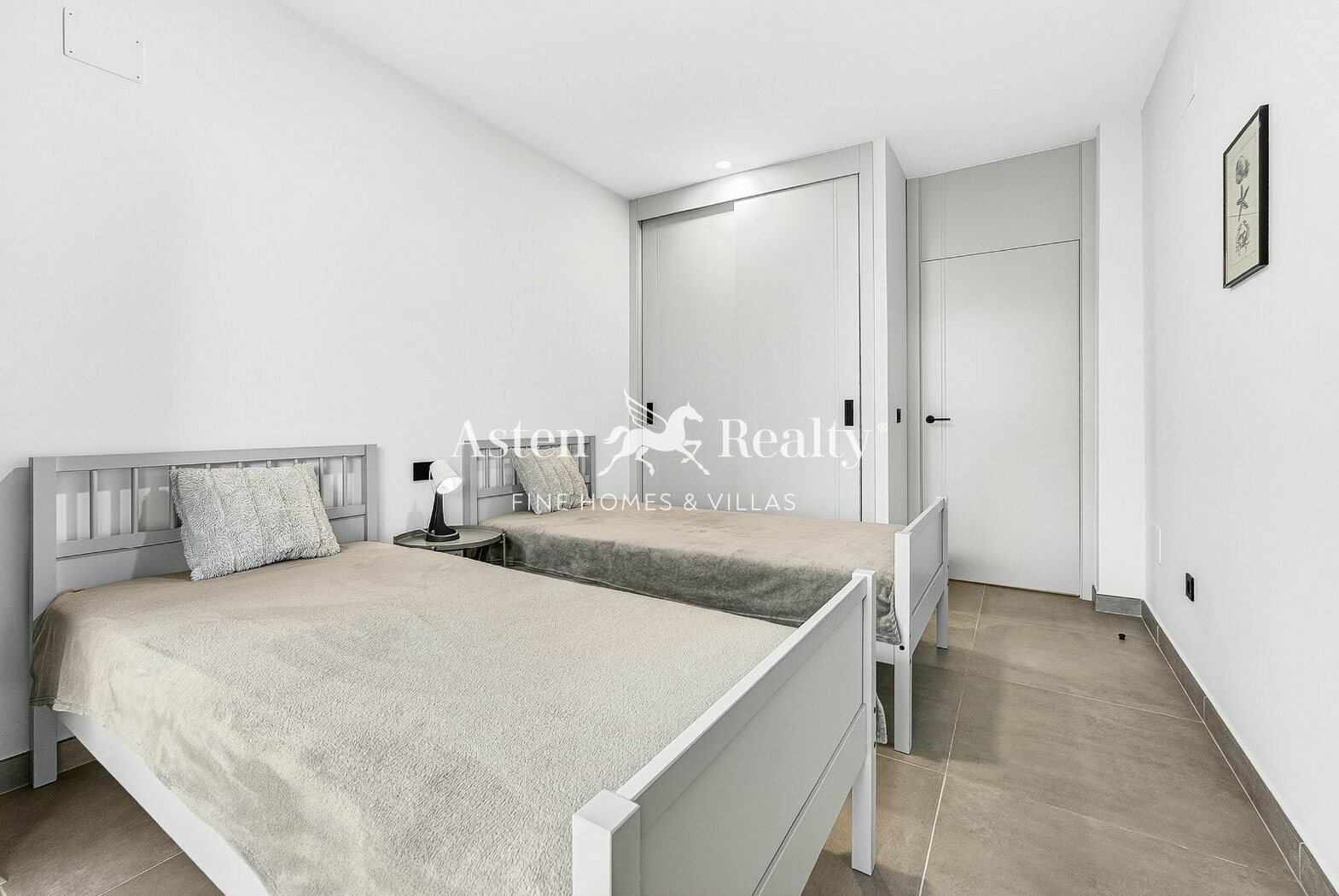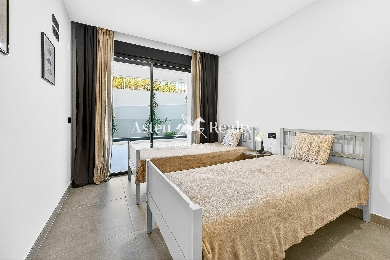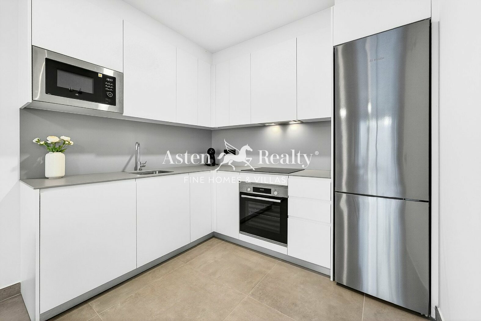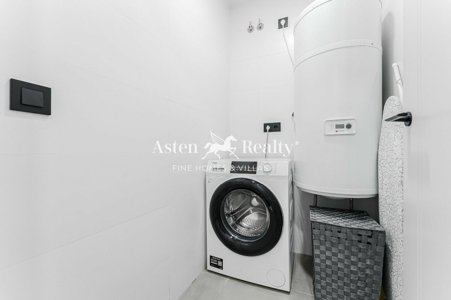 Cet impressionnant appartement de 130 m² habitables est situé au rez-de-chaussée. Il comprend 2 chambres, 2 salles de bains (dont une en suite), un grand salon-salle à manger avec cuisine américaine entièrement équipée d’appareils électroménagers haut de gamme, une buanderie, ainsi qu’une fantastique terrasse de 45 m² avec vue sur le parc public, offrant tranquillité et communion avec la nature. Il est équipé de volets roulants électriques dans toutes les pièces et de la climatisation.