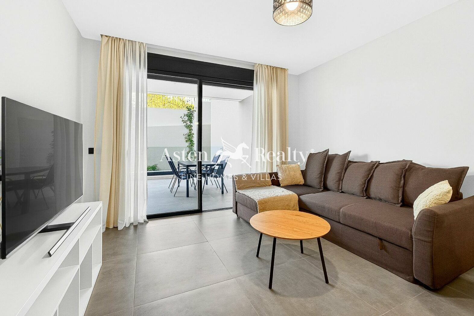 Confortable appartement doté d’une spacieuse terrasse de 45 m² situé dans le complexe de luxe récemment construit Atlantic Homes, à El Madroñal, à Costa Adeje.