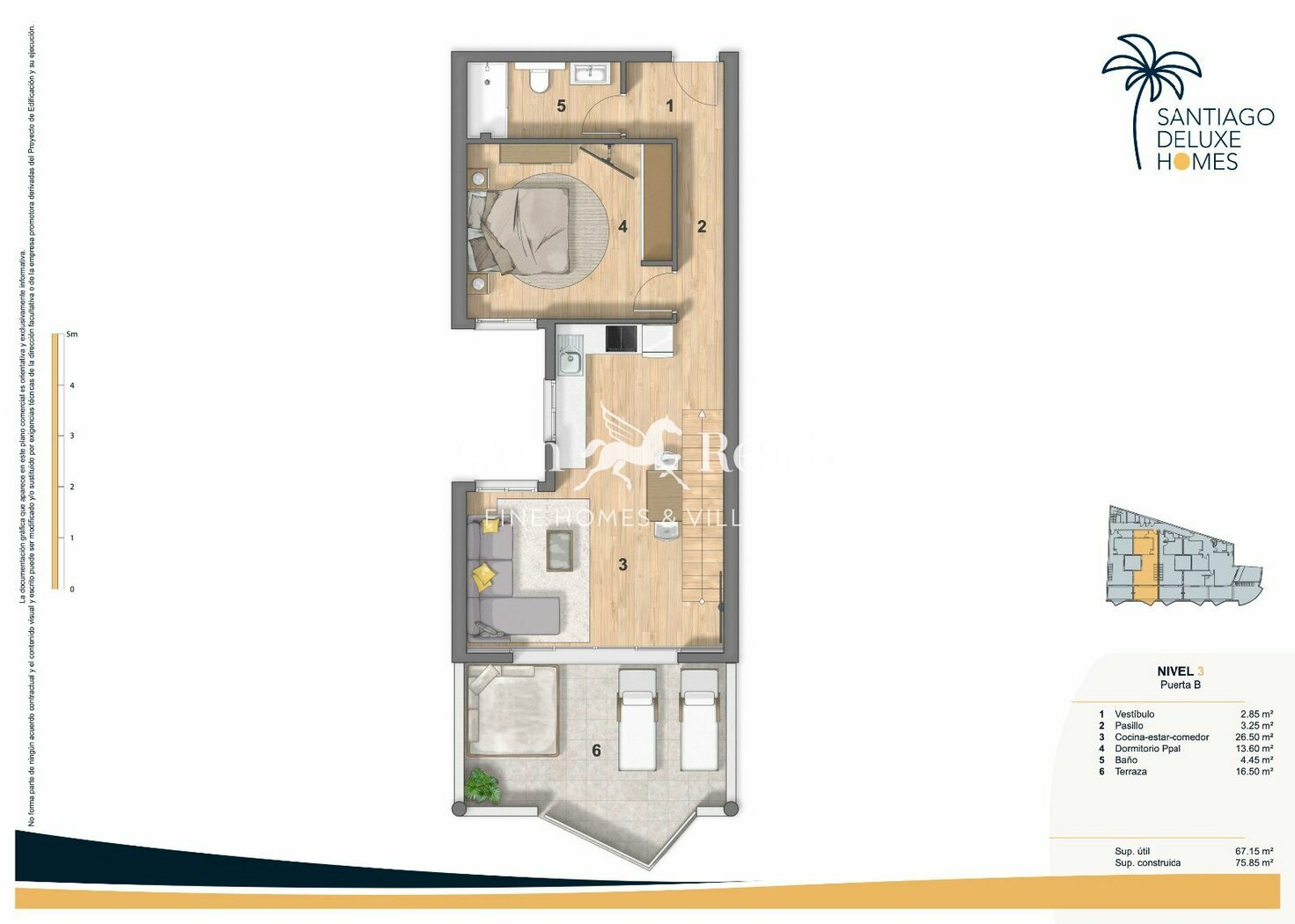 Nouveau développement à Puerto Santiago, municipalité de Santiago del Teide. Résidentiel de 18 appartements, construction avec finitions de haute qualité, immeuble de 5 étages, avec garage souterrain et piscine communautaire chauffée sur le toit. Ascenseur du sol du garage au toit et un ascenseur pour personnes handicapées.