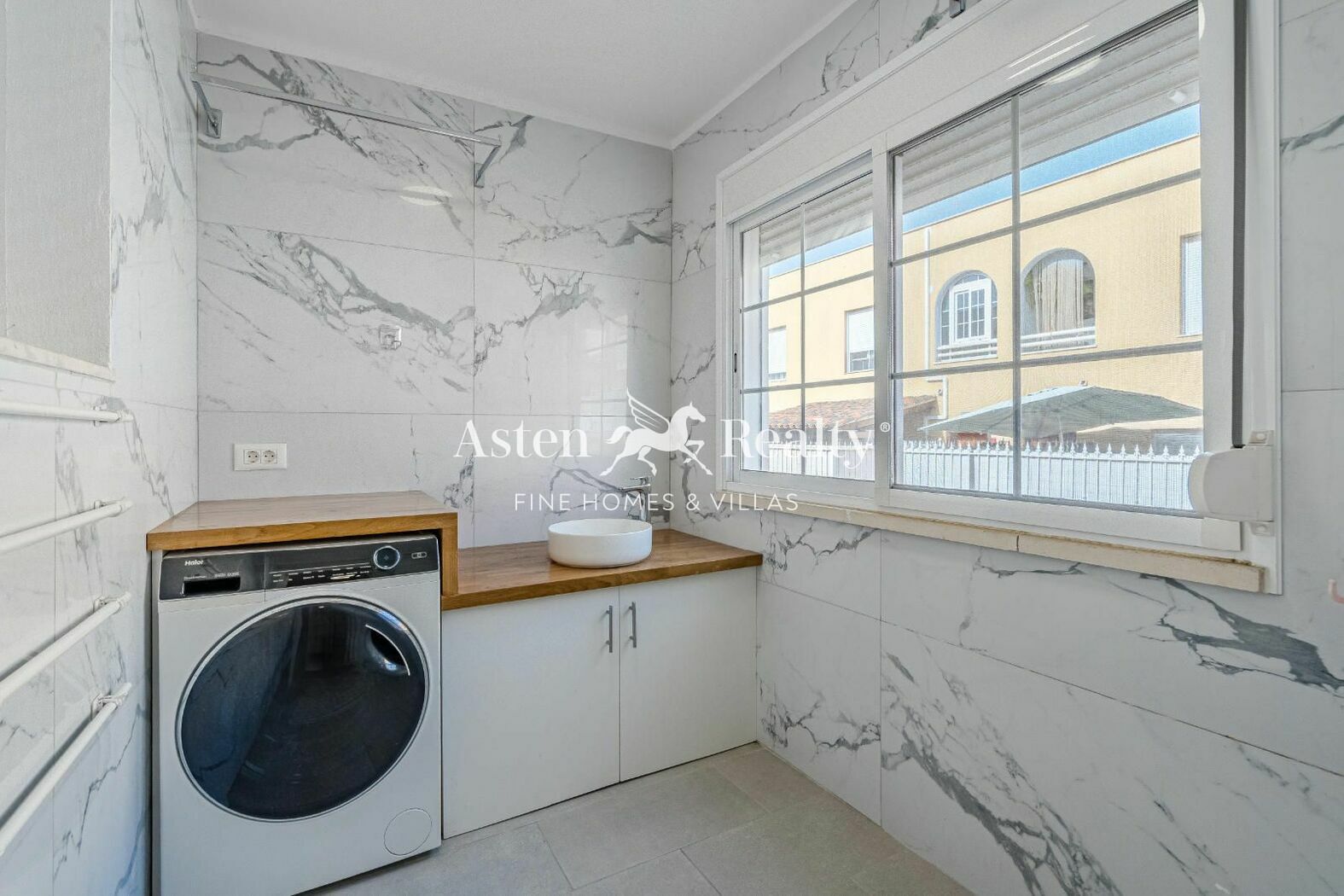 Au rez-de-chaussée, il y a un salon spacieux avec une grande terrasse extérieure, une cuisine indépendante entièrement équipée et des toilettes pour les invités.