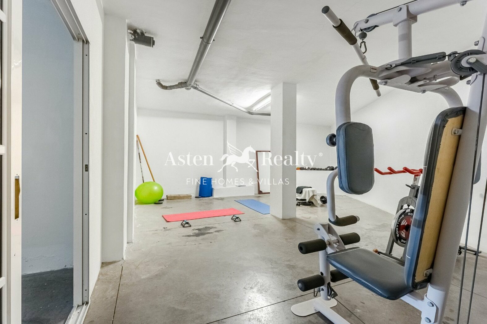 Piano inferiore: garage privato, palestra personale e ripostiglio (con possibilità di realizzare 2 camere da letto aggiuntive).
