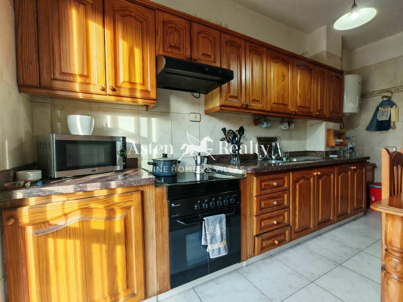 L’appartamento dispone di un’ampia cucina indipendente con una grande finestra esterna, un soggiorno-sala da pranzo molto spazioso con accesso a un balcone con vista sulla città e tre camere da letto matrimoniali, tutte con armadi a muro. Dispone di due bagni completi con vasca, uno dei quali en suite all’interno della camera da letto principale.