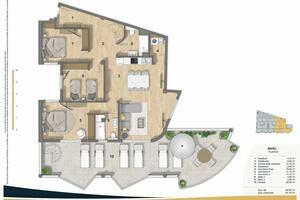 Duplex floor 3/4 C, 2 bedrooms, 2 bathrooms, 106,85 m2 total with 25,45 m2 of terraces, PRICE €495.000