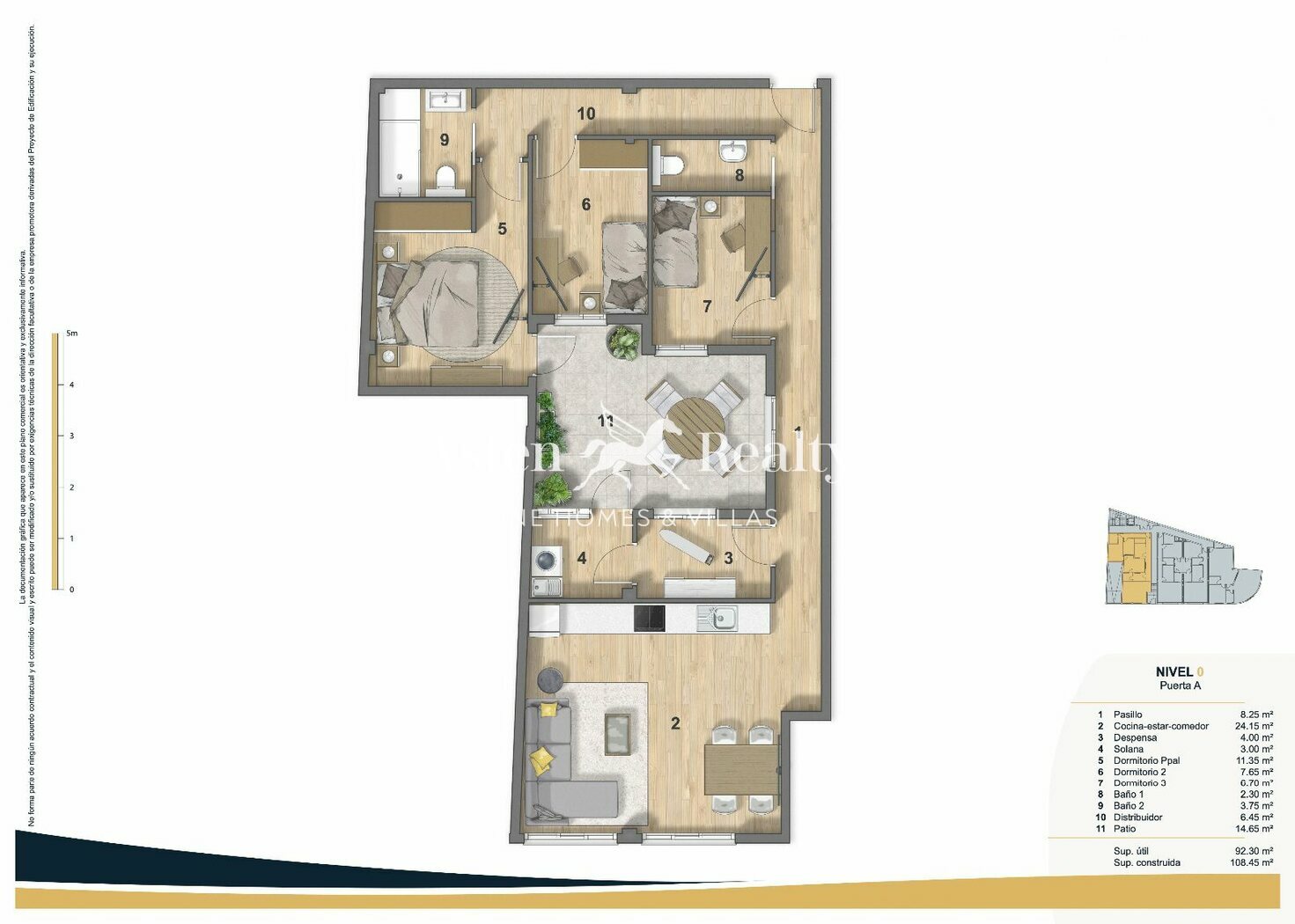 Ground Floor 0A, 3 bedrooms, 2 bathrooms, 108,45 m2, PRICE €345.000