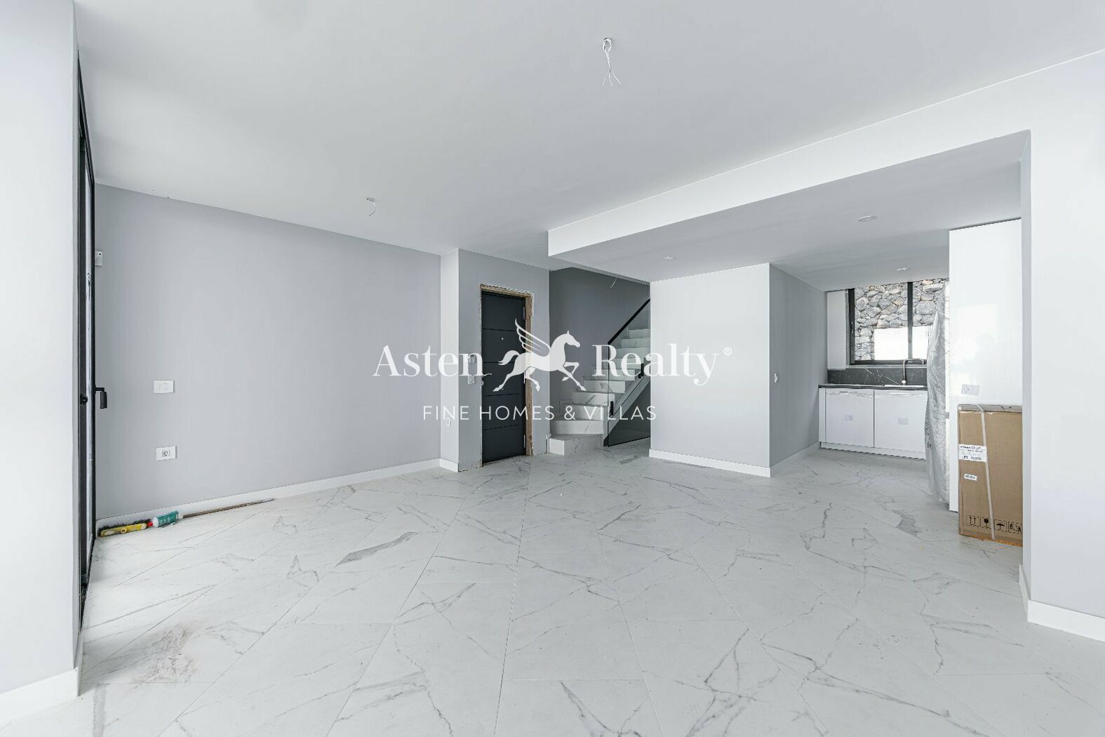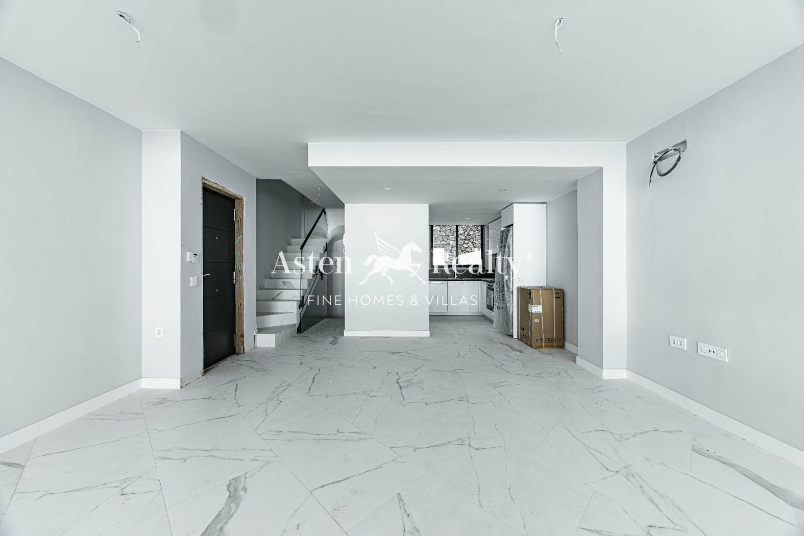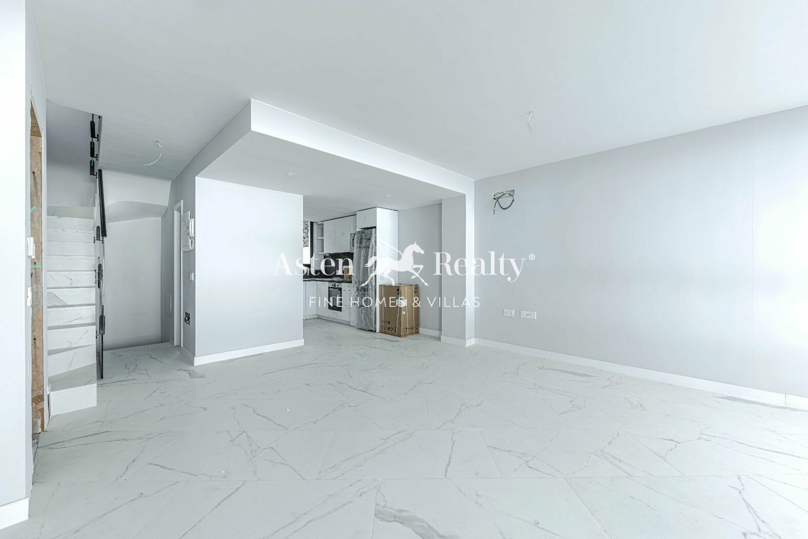 Each townhouse has a main floor with a spacious and bright living-dining room, a fully fitted and equipped kitchen with top-of-the-range appliances, and a guest toilet. From this floor, there is access to two terraces: one at the front and the other at the back which connects to a small private garden, ideal for enjoying moments outdoors.