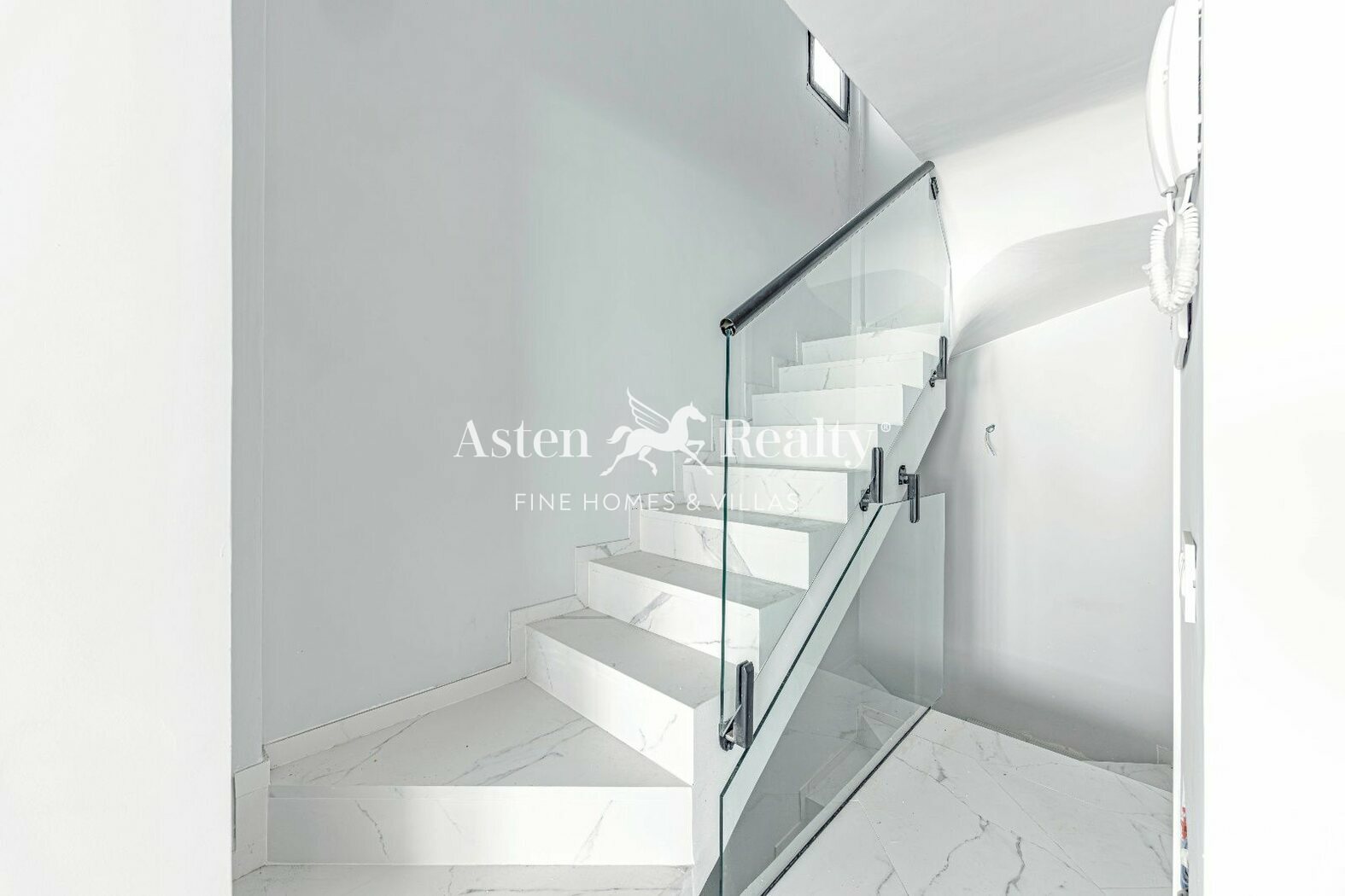 On the upper floor, we find three bedrooms full of light and comfort. The master bedroom stands out for its en suite bathroom and a charming private balcony with unobstructed sea views, perfect for relaxing and enjoying the best sunsets. The other two bedrooms share a second full bathroom, both designed with quality finishes and contemporary style.