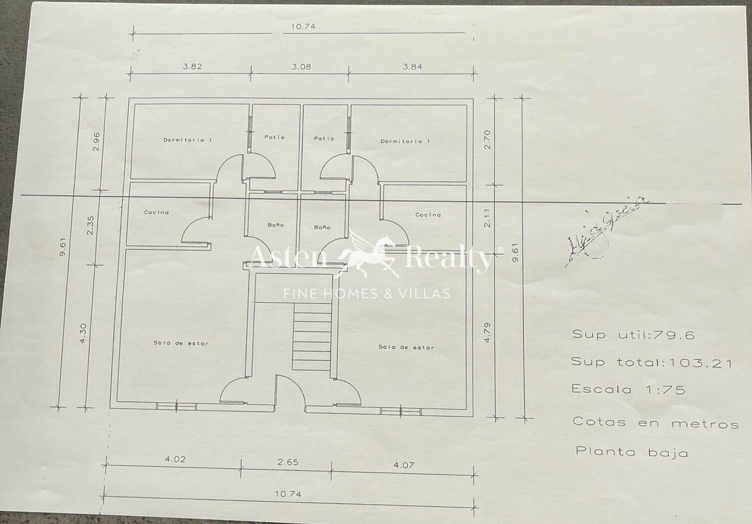 * Ground floor: 2 apartments with 1 bedroom, separate kitchen, living room, bathroom, and patio.