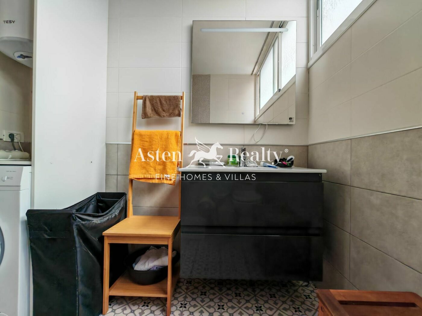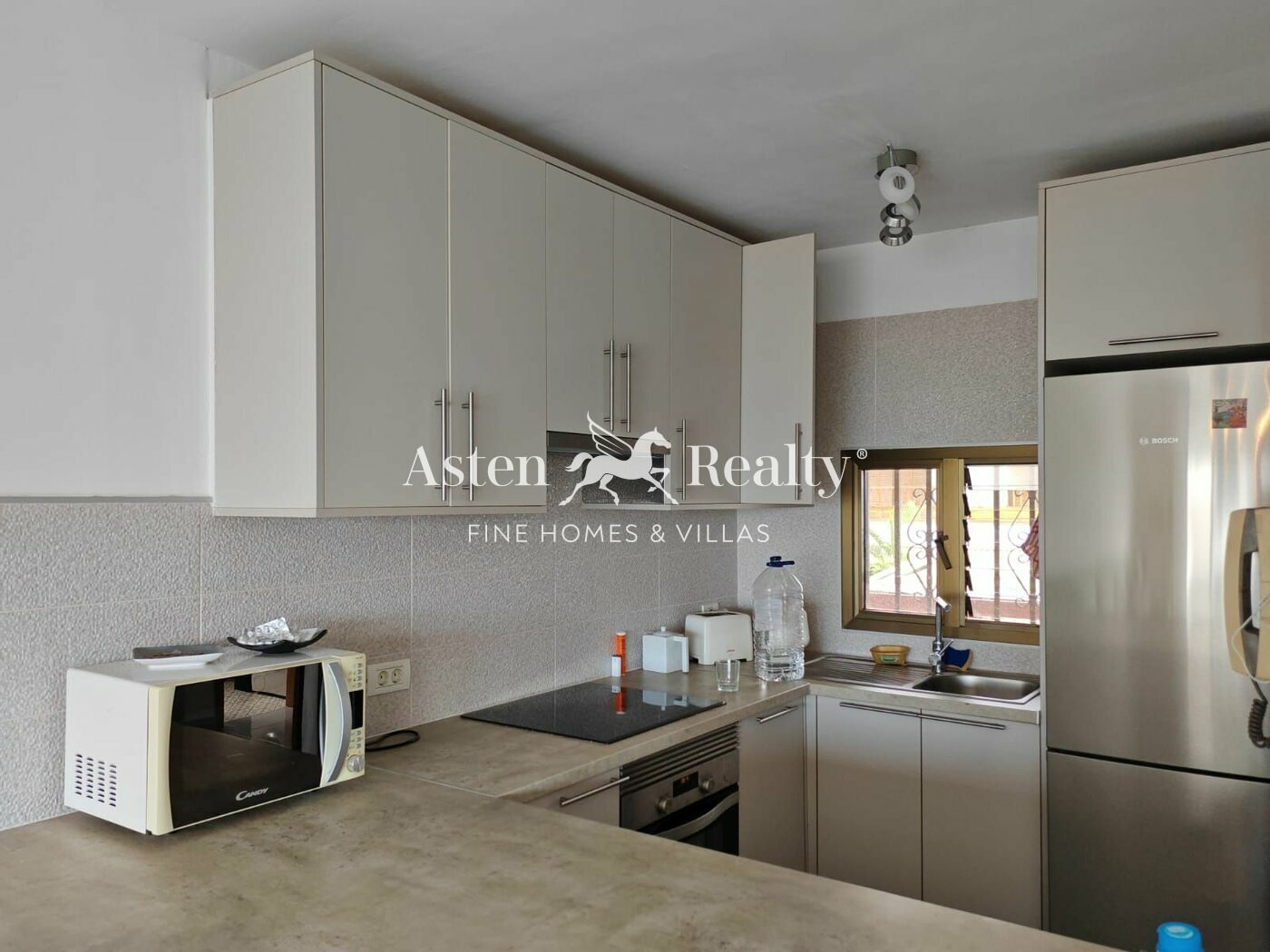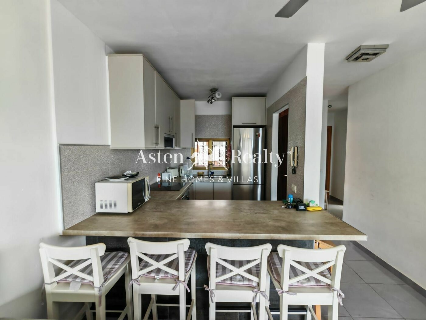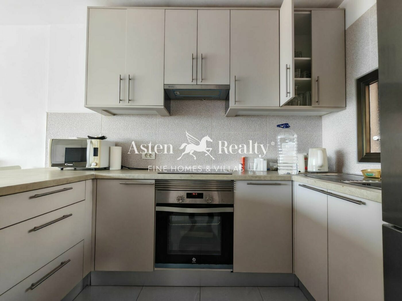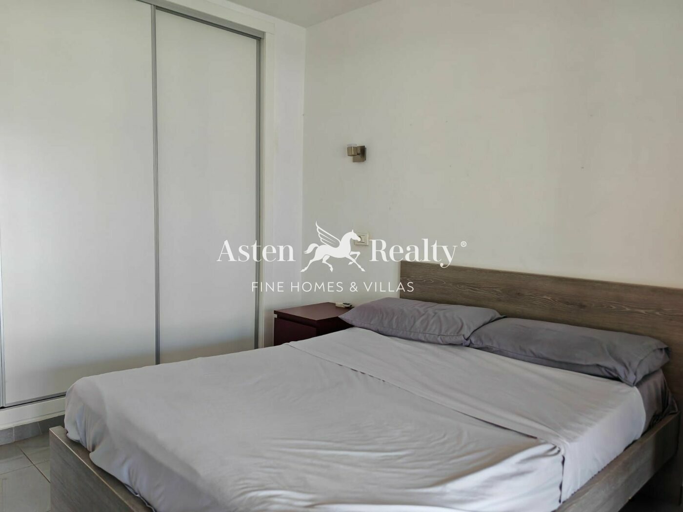 The property has 2 double bedrooms and 2 bathrooms, one of which is en-suite in the master bedroom, which also has a small balcony. The living/dining room is spacious and bright, with access to a 10 m² terrace offering partial sea views. The recently refurbished kitchen is spacious and equipped with good quality appliances.