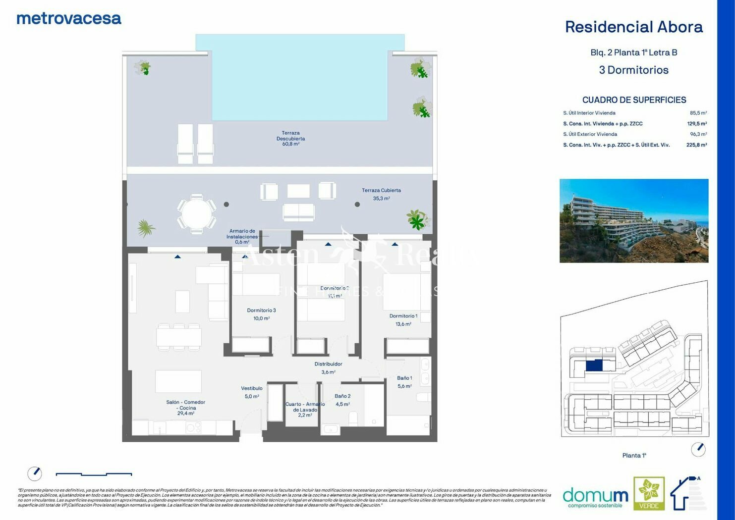Residencial ABORA stands out for its large terraces and communal areas: concierge service, swimming pool, elevators, gym, and landscaped zones. The development also includes an underground level with parking spaces and storage rooms.