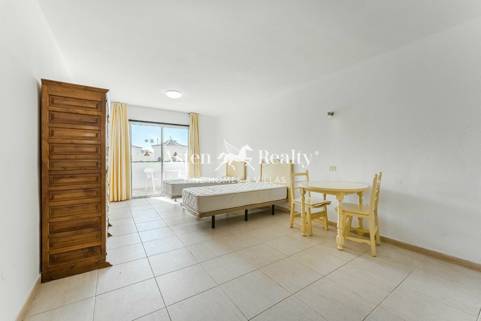 This studio is located on the first floor of the El Sombrero complex, in Los Gigantes. It stands out for its large living space and the advantage of having a separate, independent kitchen, offering a more practical layout than many studios.