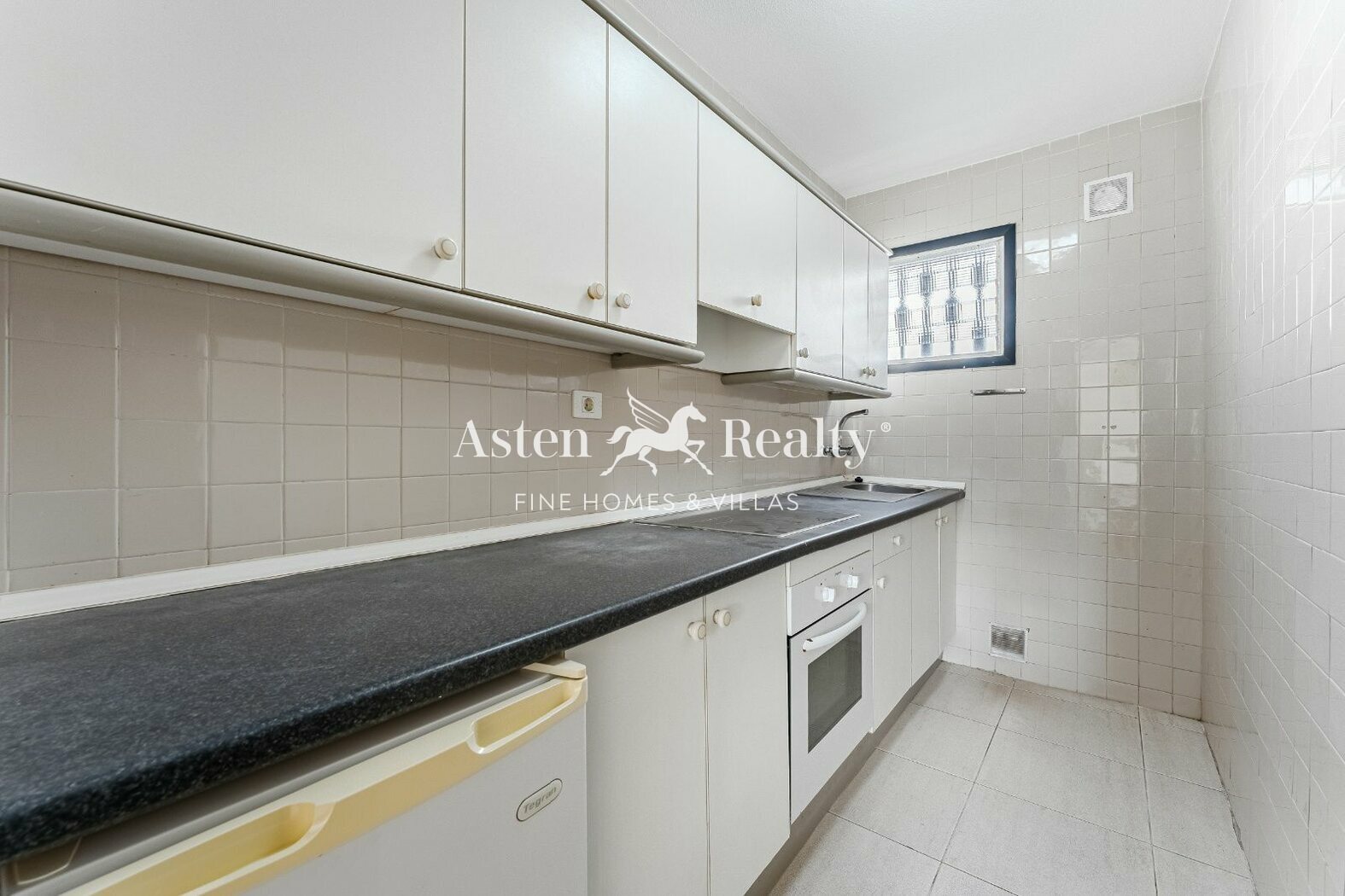 Inside, the studio offers a generous open living area with multiple possibilities for redistribution or updating. The kitchen is independent, allowing clear separation from the main living space. The bathroom features a bathtub with an incorporated shower. The property needs modernisation, making it a good opportunity for buyers who wish to renovate and adapt the space to their own taste.