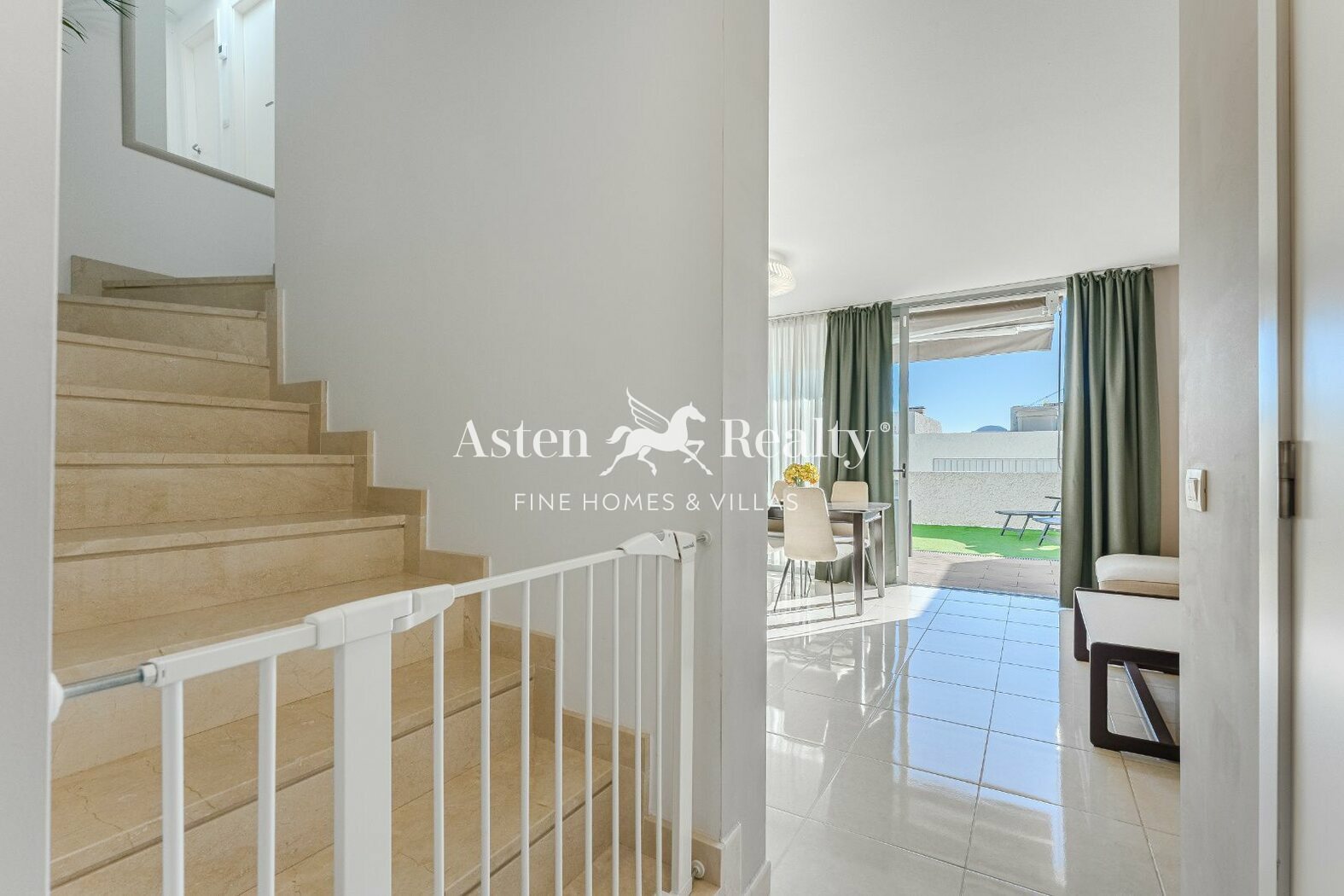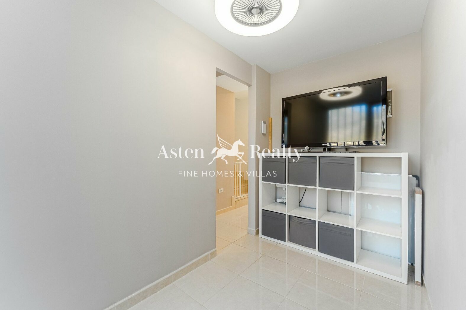 - On the first floor there is a cosy front patio with a parking space and an automated sliding door, a fully equipped separate kitchen, a spacious living room with access to a terrace, a bathroom with a shower tray and an auxiliary room ideal as an office, games room or additional bedroom.