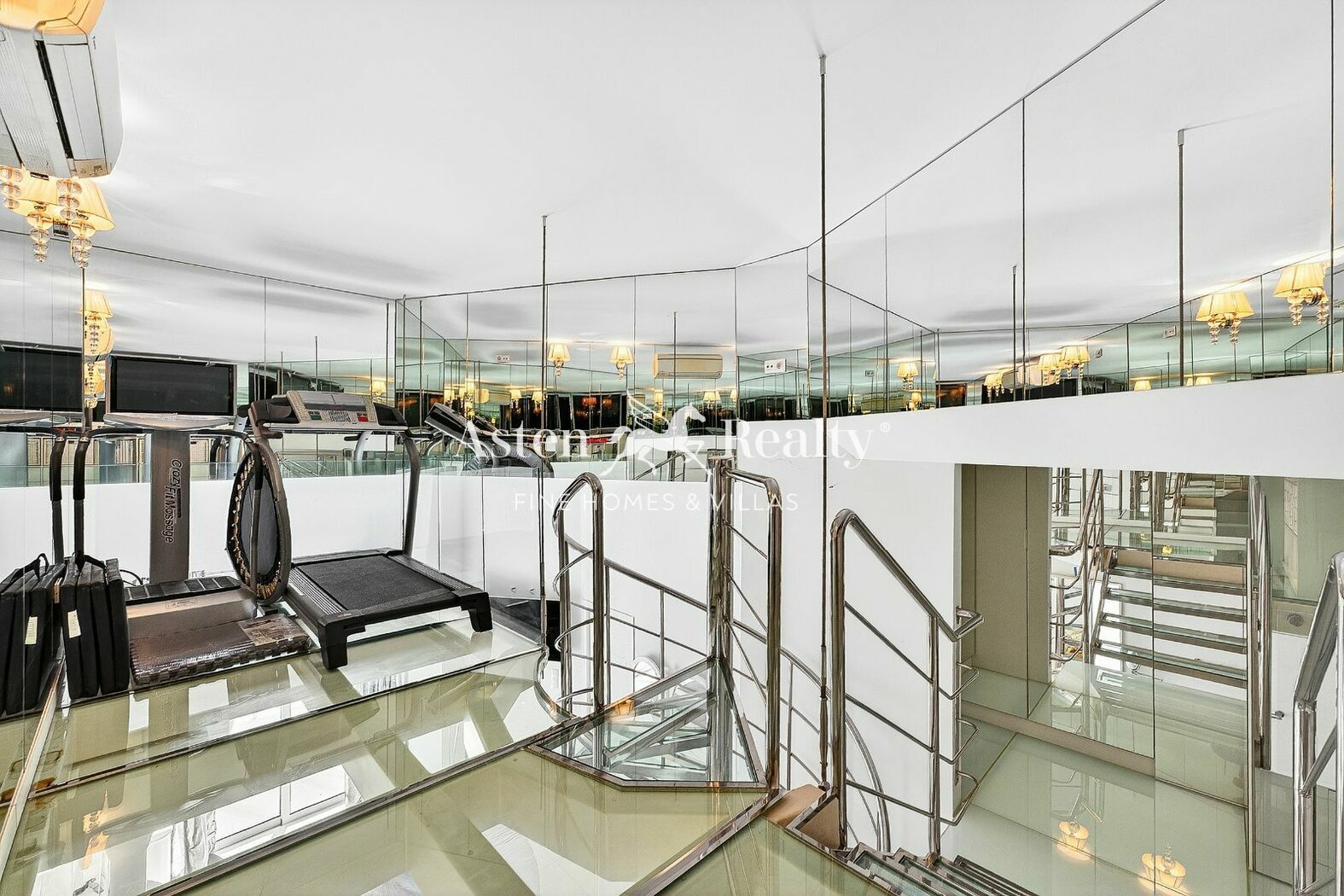 The property is sold fully furnished and equipped, including four televisions and a private fitness area with a treadmill and training equipment. It also includes the right to park one vehicle in the communal parking area.