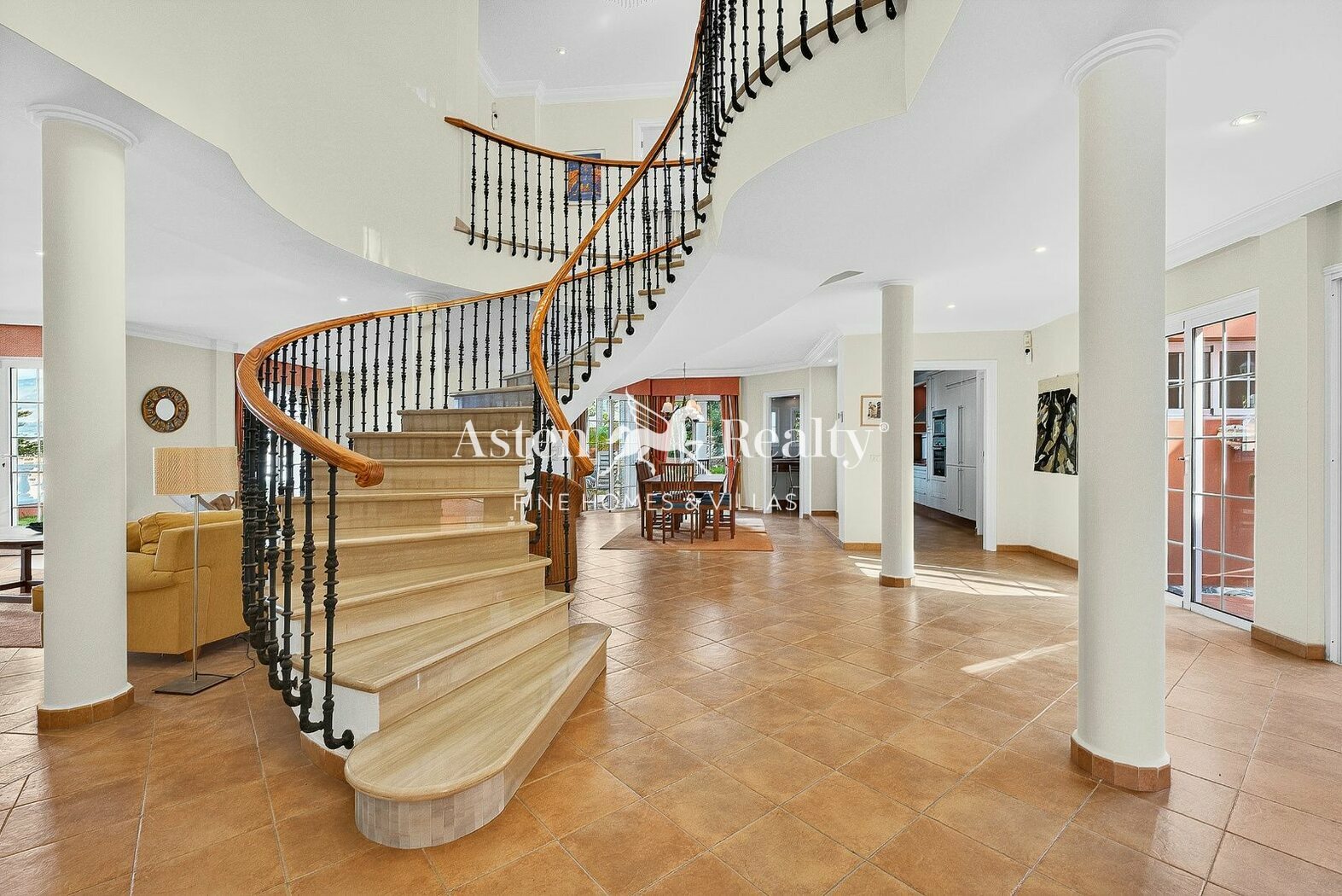 The main floor offers spacious and bright rooms. It has two bedrooms, both with en-suite bathrooms, with direct access to the terrace and garden, from where you can enjoy panoramic views of the sea and the island of La Gomera from practically any point. The living room is huge and open-plan, full of light, and connects to the beautiful staircase leading to the upper floor. The kitchen is separate and fully equipped with Bosch appliances, with a laundry and cleaning area. The bedrooms are very large, some with fitted wardrobes and others with dressing rooms, and there is also a guest toilet. Outside, the property has a 350 m2 terrace and a 210 m2 garden, with a barbecue area and two heated swimming pools, one for adults and one for children. It also has a private garage for several cars and a space that can be used as a workshop or work area.