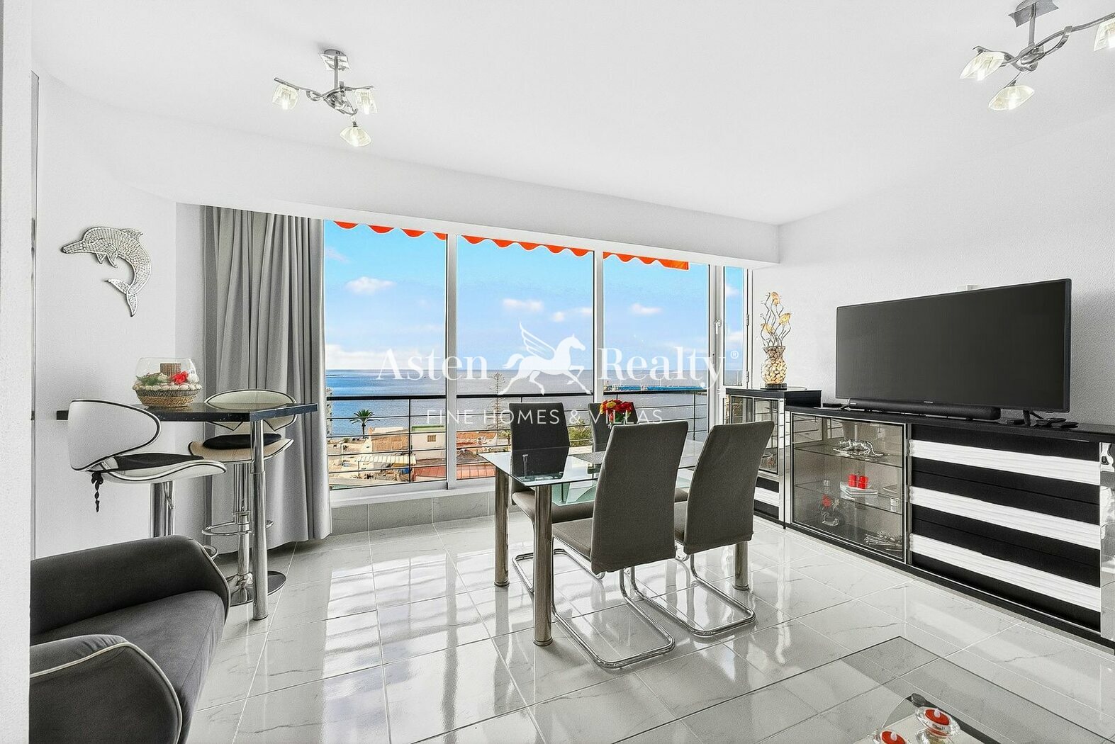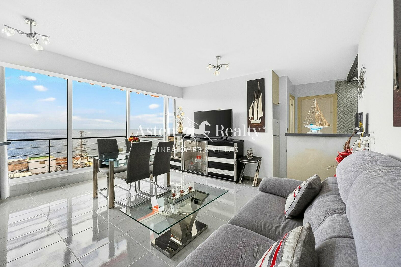 The property has a built area of 44 m2 and offers open panoramic views of the ocean, harbour, coastline and mountains from both the living room and the bedroom. The apartment is bright and well ventilated thanks to its orientation and large windows.