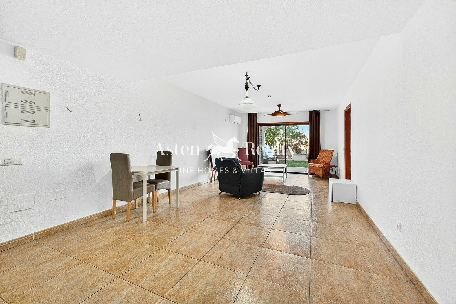 The flat is sold unfurnished, allowing the new owner to design and adapt it completely to their own style. The complex has a heated communal swimming pool, as well as a pool bar and restaurant, reception and services that provide added comfort for both living and holiday stays. The resort was built in 1989 and is known for its peaceful and well-kept atmosphere.