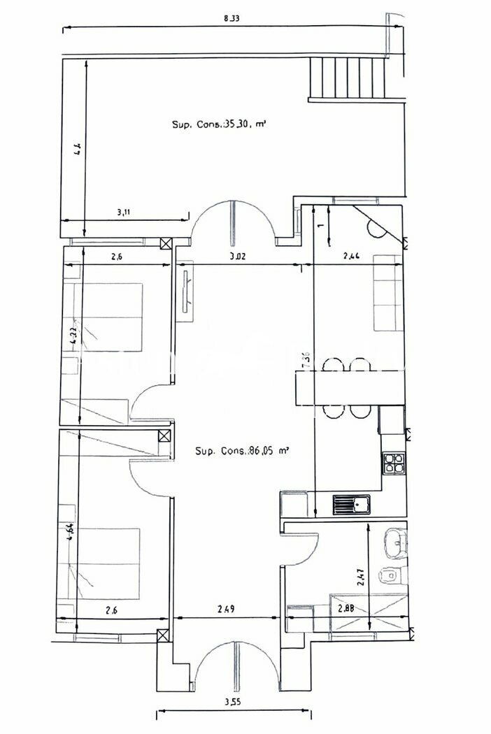 This property is an excellent option for those seeking space and the opportunity to design the interior according to their own needs and preferences. The apartment features a fully finished kitchen and bathroom, while the remaining areas are left for individual completion, with the option to finalize the works according to an agreed project.