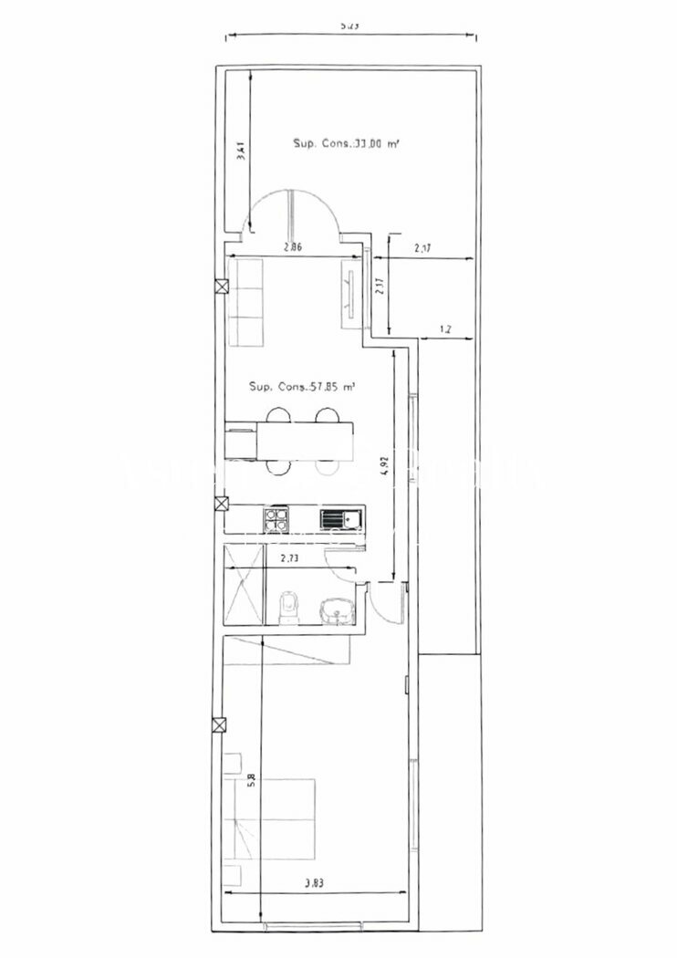 This property is an excellent option for those seeking space and the opportunity to design the interior according to their own needs and preferences. The apartment features a fully finished kitchen and bathroom, while the remaining areas are left for individual completion, with the option to finalize the works according to an agreed project.