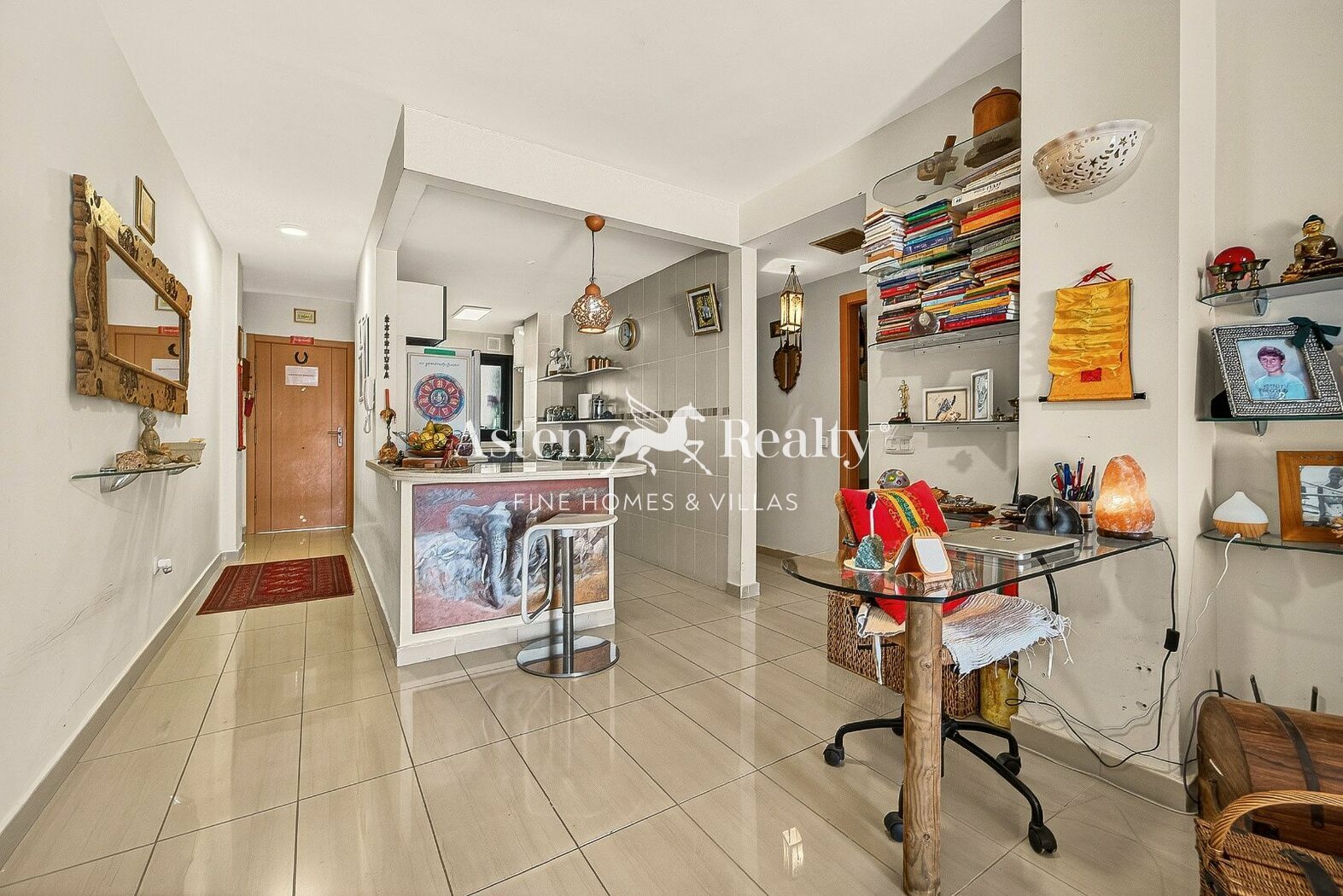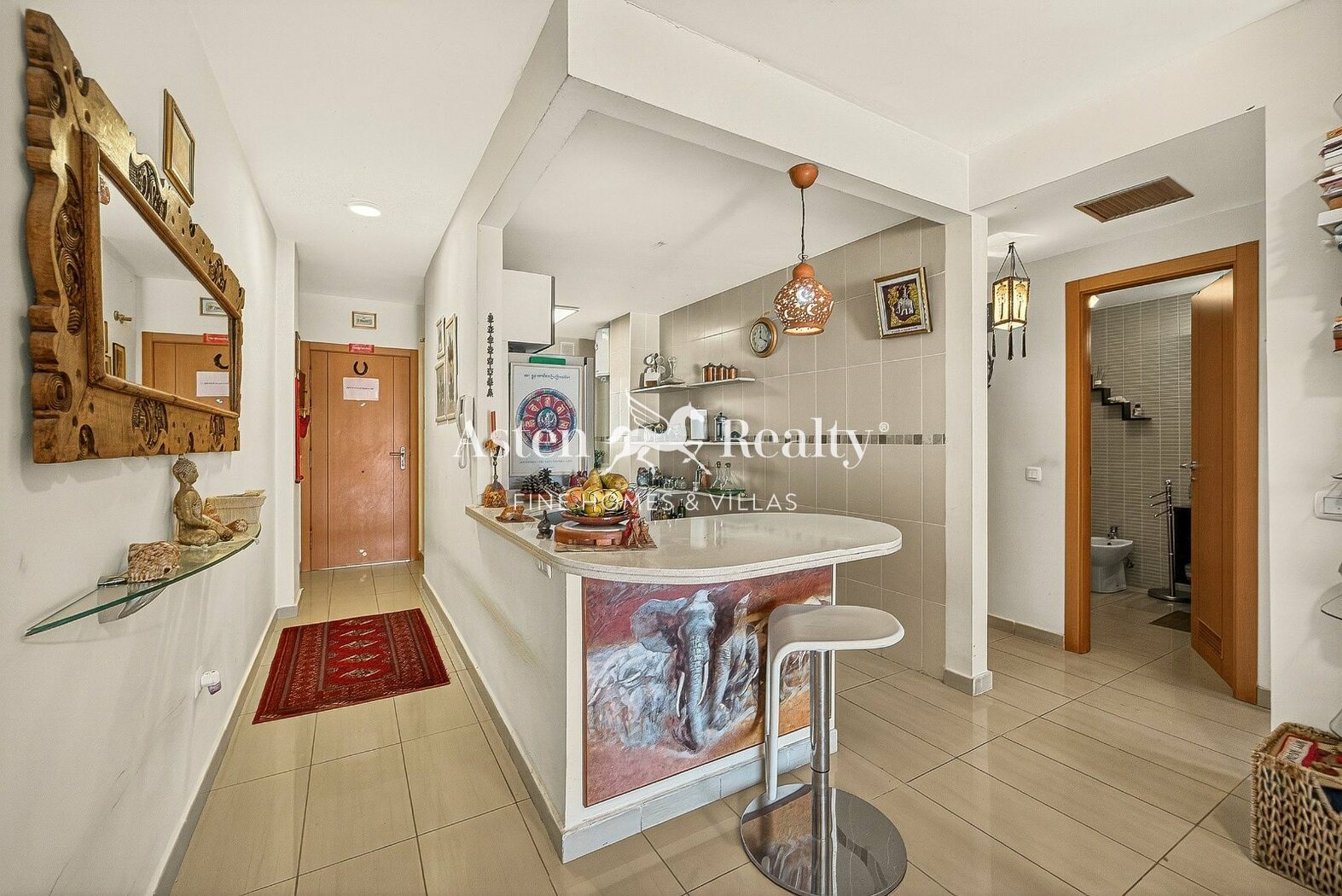 The property features 2 bedrooms and 2 bathrooms. Currently, one of the bathrooms has been converted into a walk-in wardrobe, although all fittings are available to easily reinstall it as a bathroom. The apartment offers an open-plan kitchen and a bright living room with direct access to the spacious terrace.