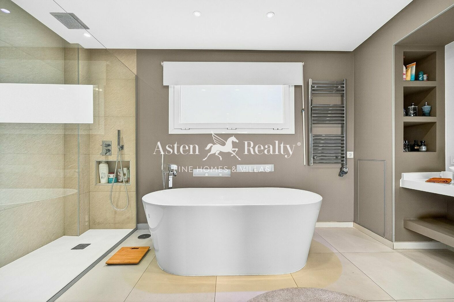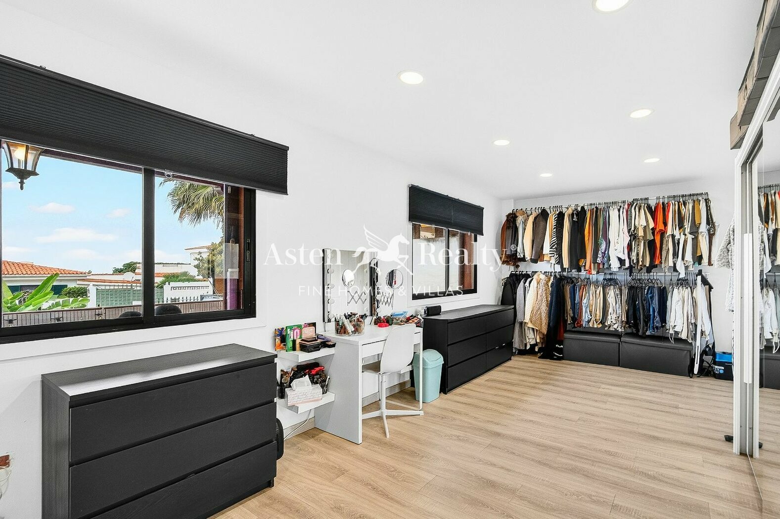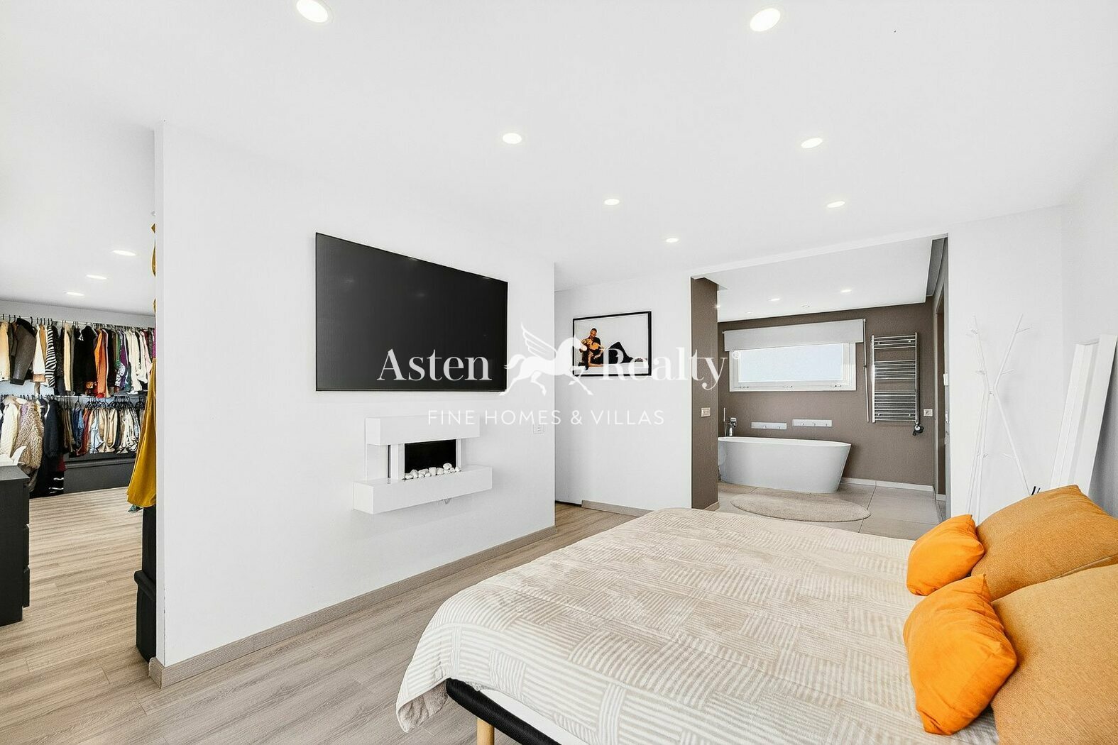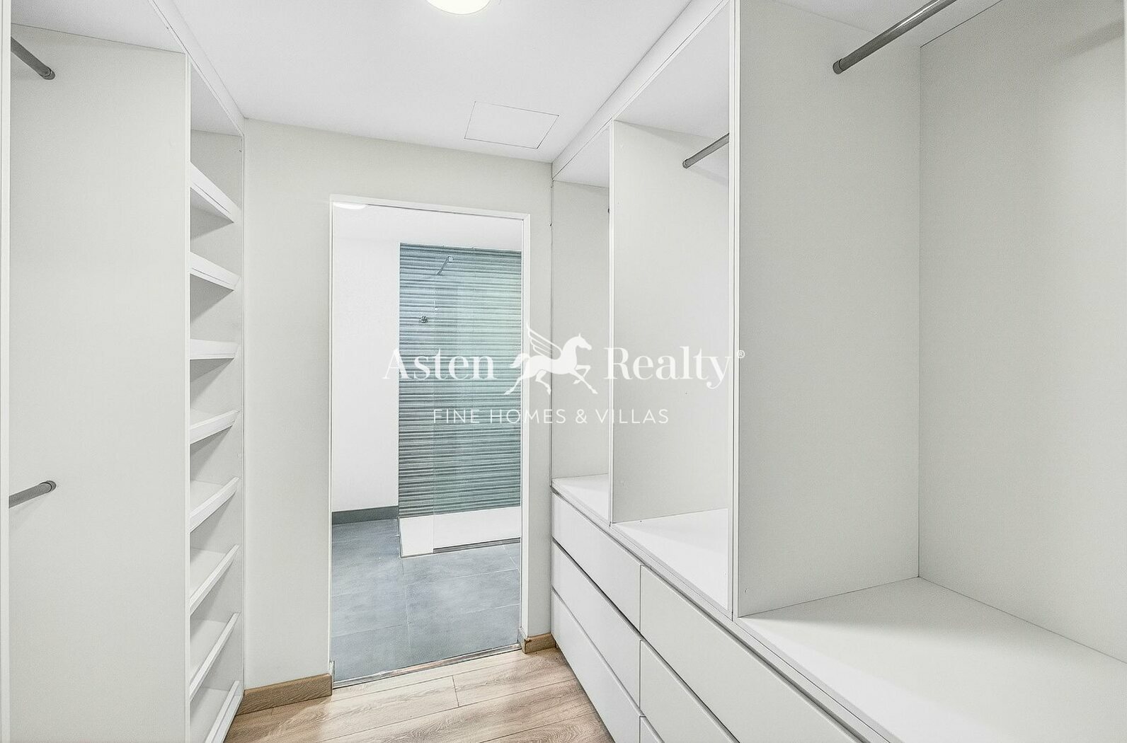 On the upper floor there are two spacious bedrooms. One of them has an en-suite bathroom, while the master bedroom has a dressing room that was originally two separate bedrooms, offering the possibility of easily converting it back into an additional bedroom if desired.