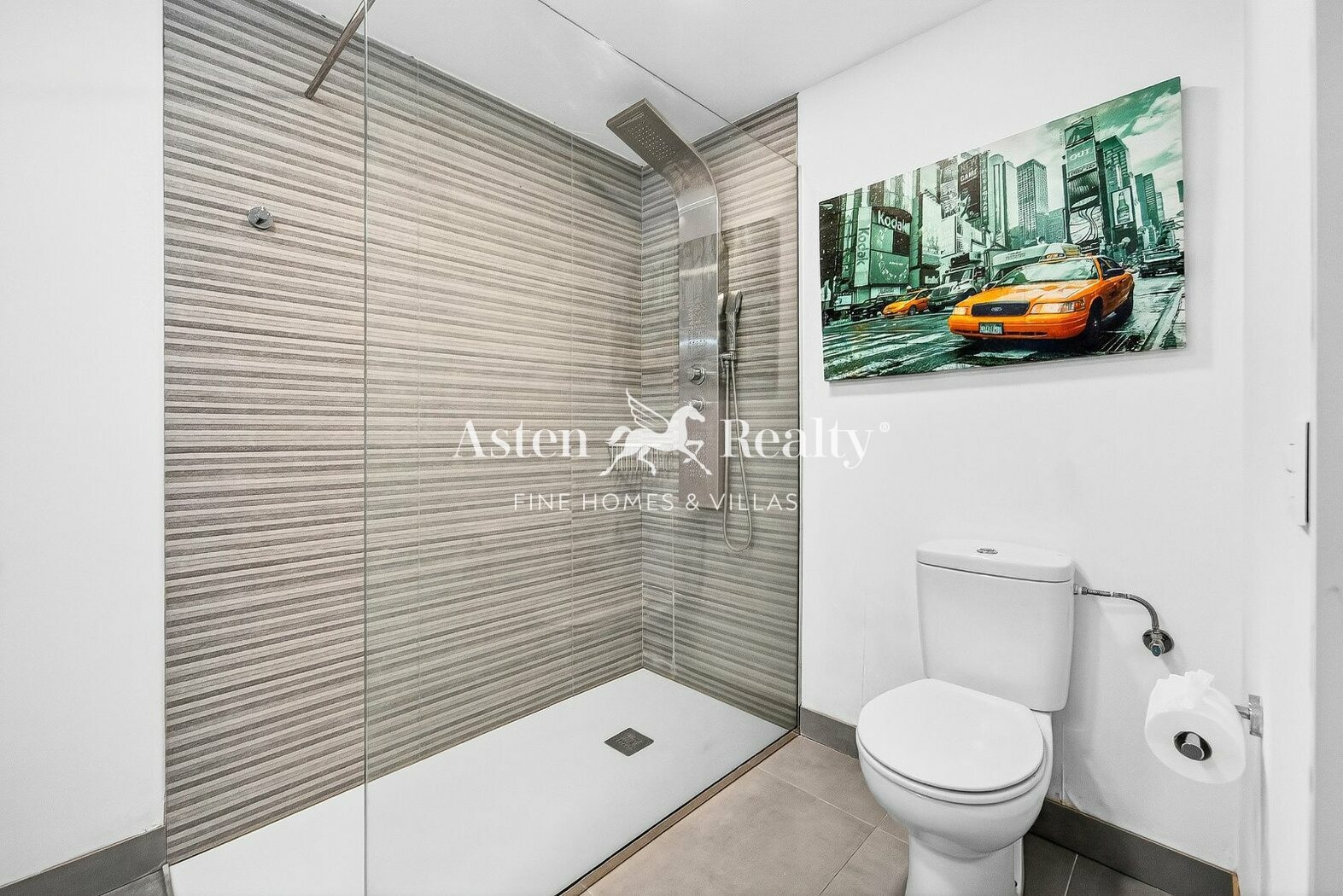The lower level adds even more functional space with a large bedroom, walk-through dressing room and bathroom, ideal for guests or as an additional private area.