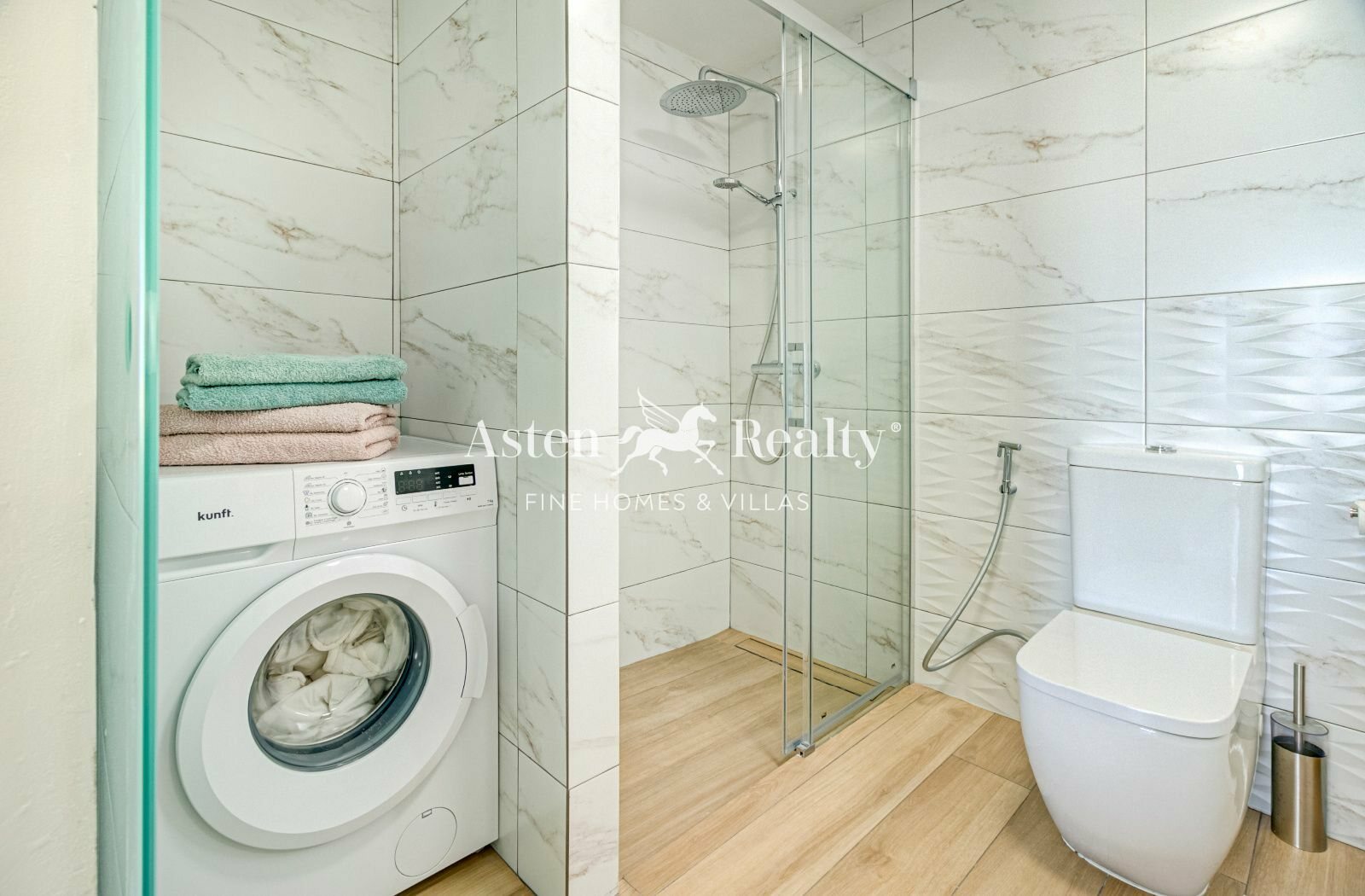 The property stands out for its brightness and well-thought-out layout. It features a spacious living room with access to a pleasant private terrace, ideal for enjoying the island’s privileged climate, with space for an outdoor dining area and a relaxation zone. The kitchen is fully equipped, ready to move in.