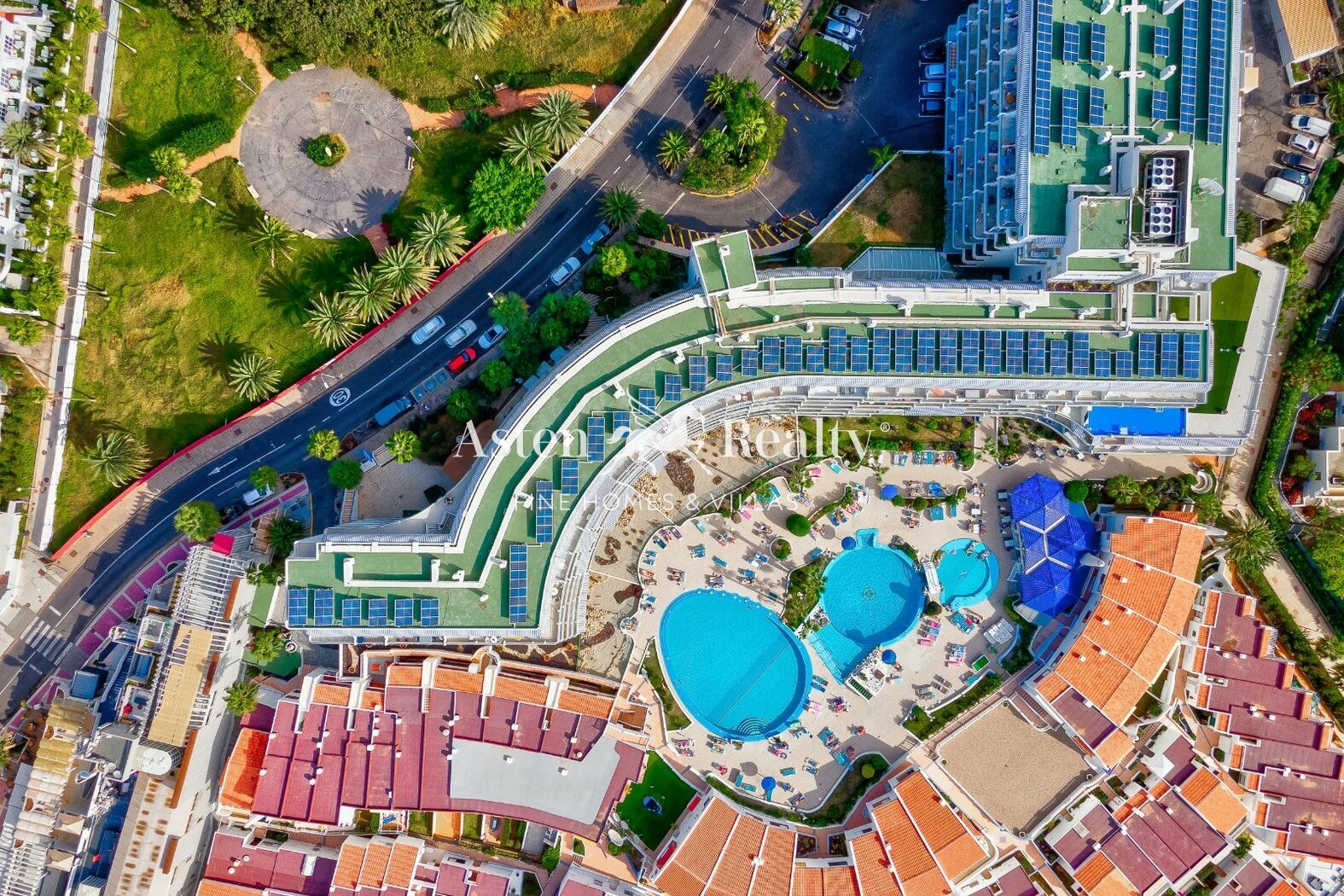 Комплекс отличается спокойной обстановкой и отличным состоянием, несмотря на свое центральное расположение. Здесь есть два бассейна (один из которых подогревается зимой), зоны для загара, сады, круглосуточная стойка регистрации с консьерж-сервисом, парковка для владельцев, прачечная, парикмахерская и ресторан-бар у бассейна. Кроме того, на всей территории есть Wi-Fi, а в апартаментах — собственный высокоскоростной интернет. Из комплекса есть прямой выход на набережную.