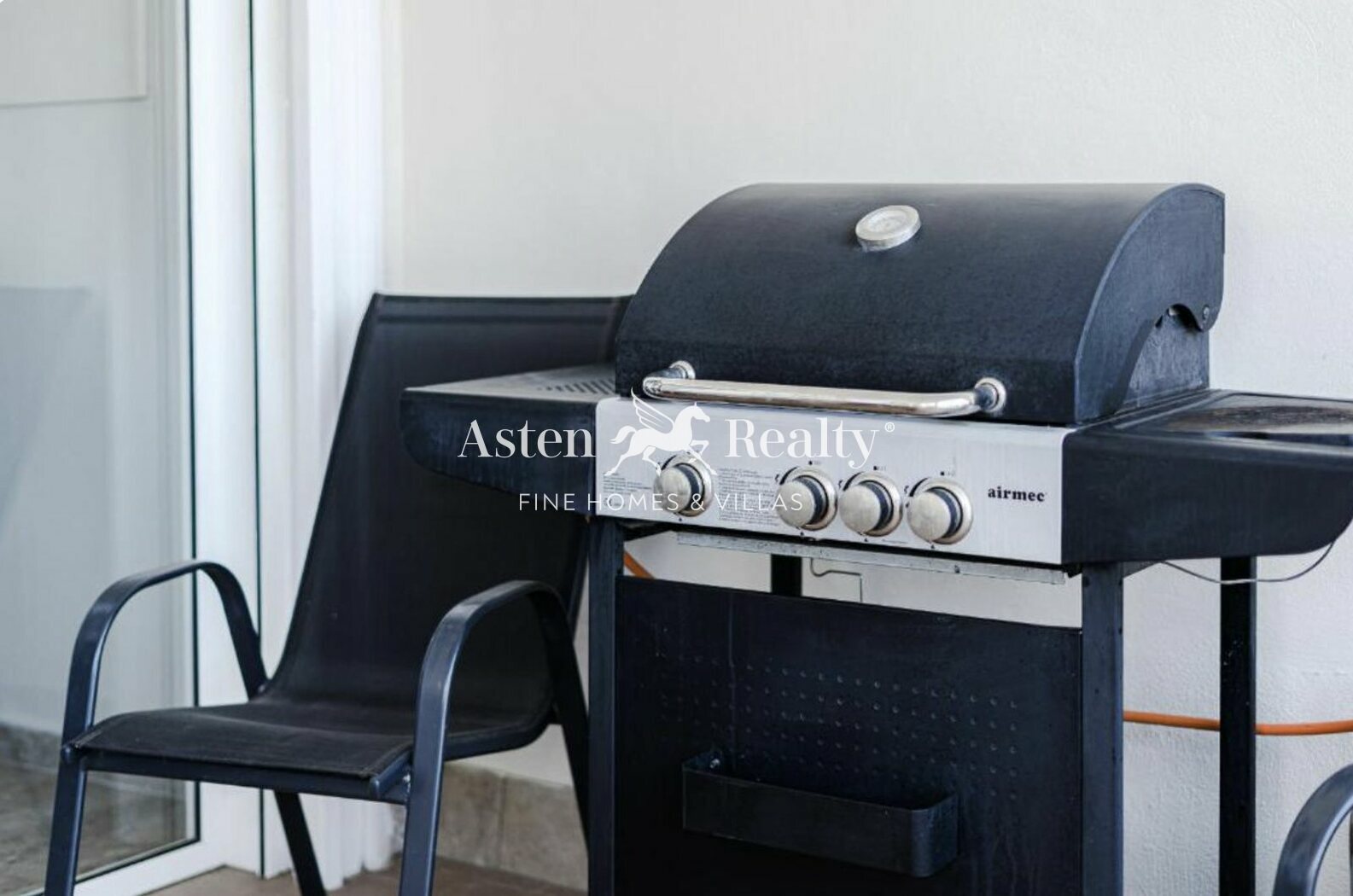 На первом этаже дома расположена просторная открытая кухня с обеденной зоной, плавно переходящая в большую гостиную с прямым видом на бассейн. На этом же этаже находится туалет с стиральной машиной, что делает повседневную жизнь более удобной. Главная терраса -