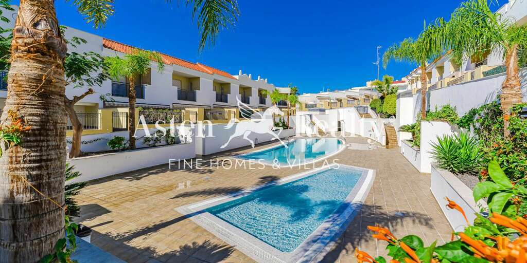Впечатляющий таунхаус площадью 274 м2 расположен в урбанизации Oasis de Fañabé I, в тихом и популярном поселке Мадроньял.